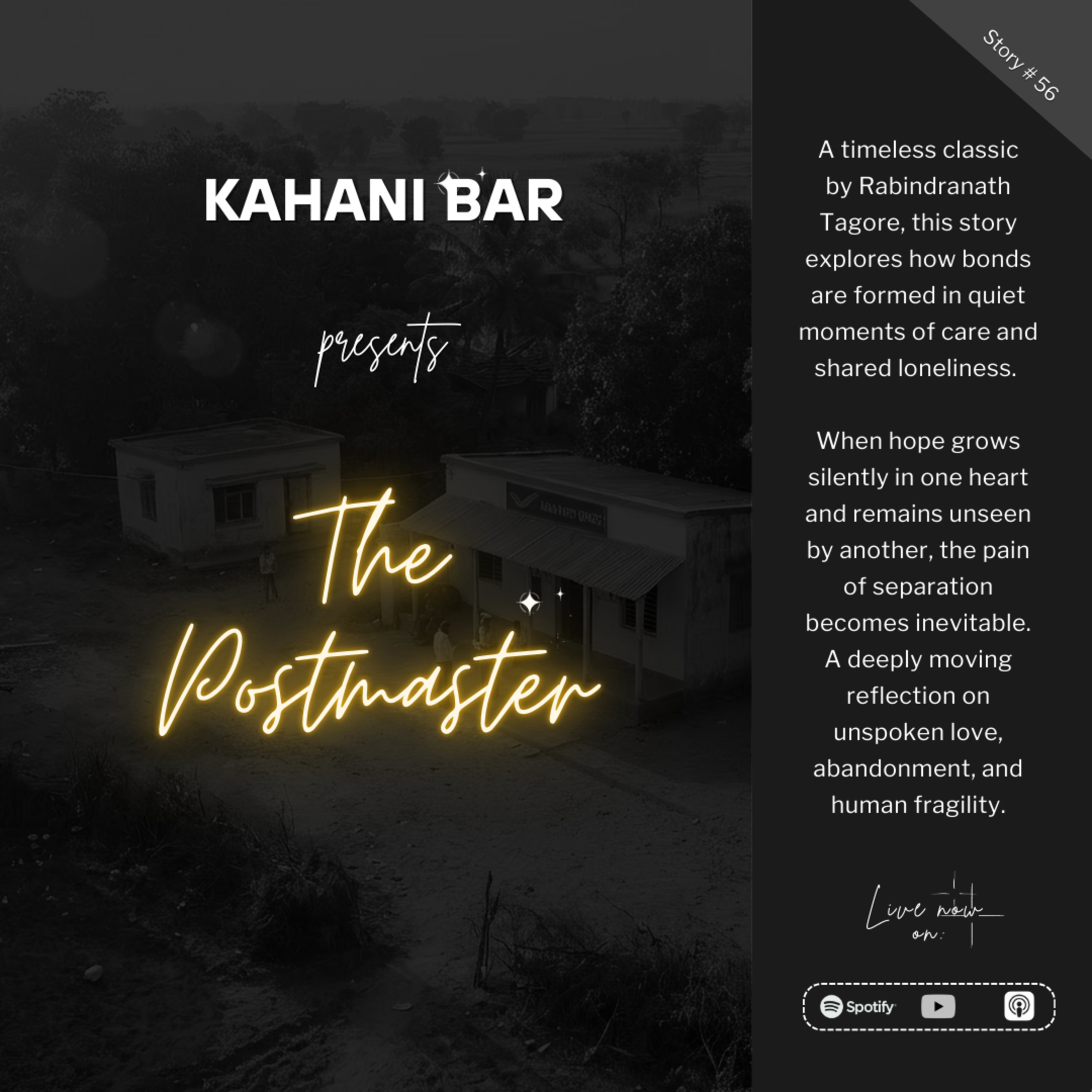 A timeless classic by Rabindranath Tagore, this story explores how bonds are formed in quiet moments of care and shared loneliness.