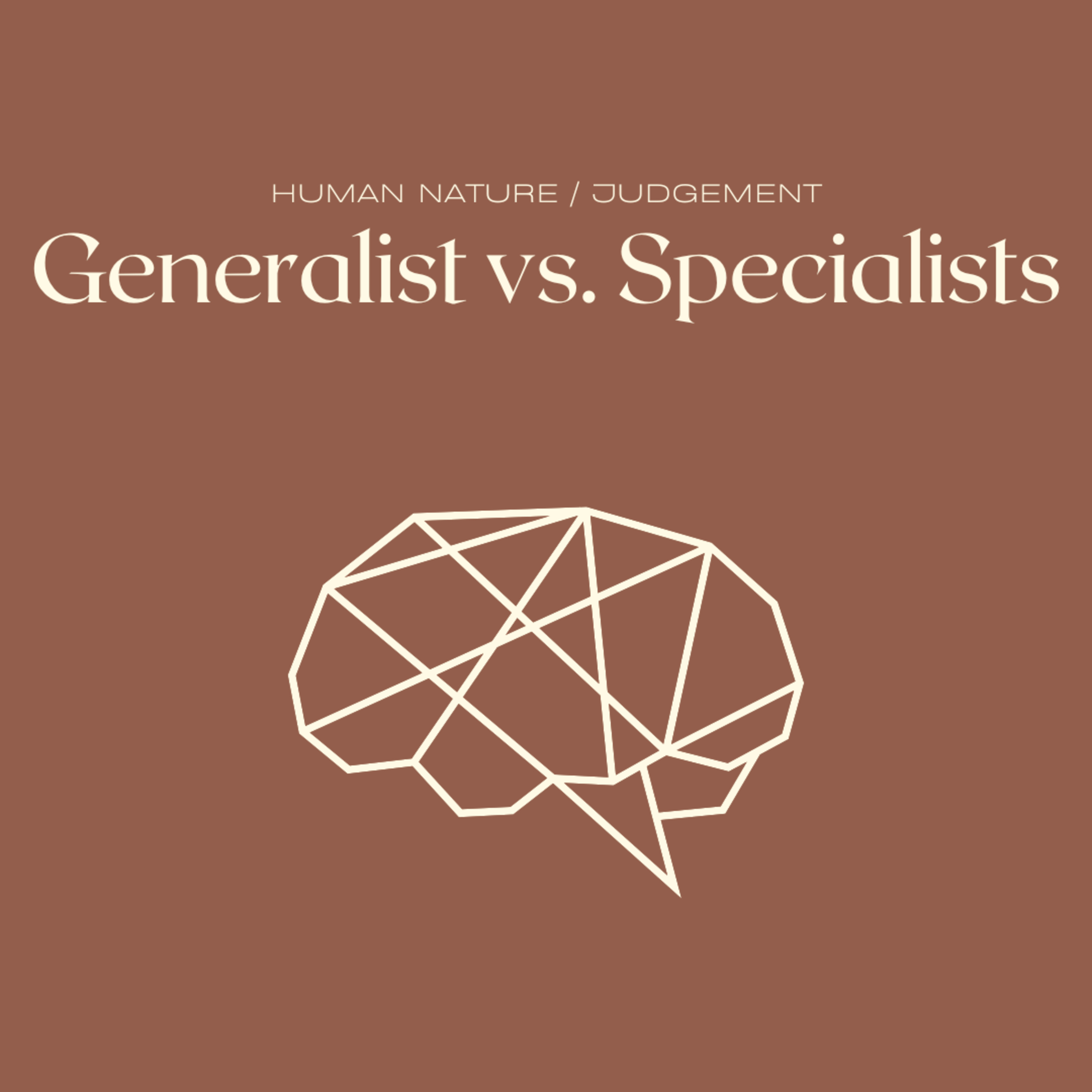 The Generalist vs. Specialist mental model refers to the distinction between individuals who possess broad knowledge and skills across multiple domains (generalists) and those who have deep expertise and focus in a specific area (specialists). Generalists excel in synthesizing diverse information, adapting to new contexts, and fostering interdisciplinary connections, while specialists demonstrate mastery, precision, and depth of knowledge within a narrow field.