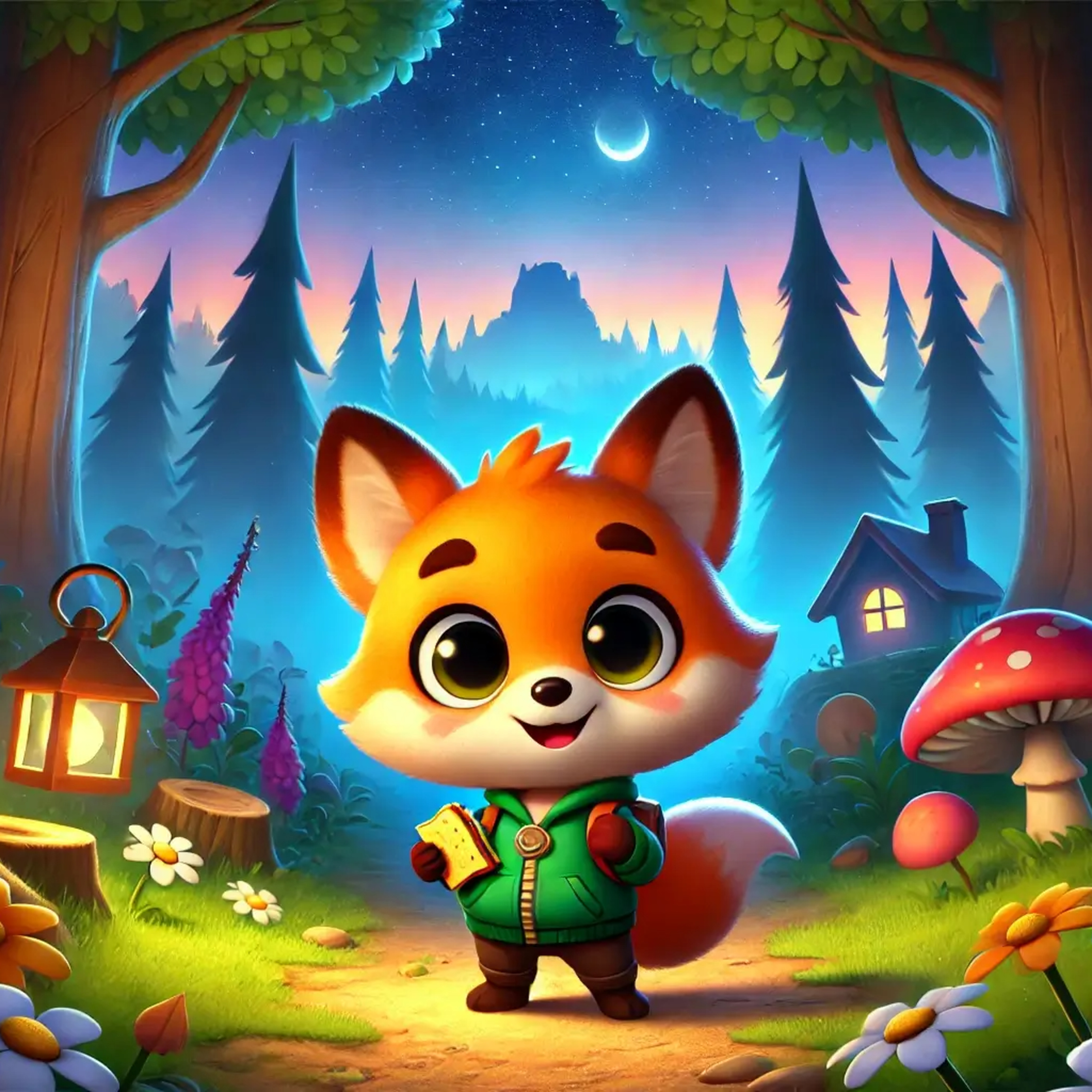 Pohádka na dobrou noc o lišce zažívající velká dobrodružství v kouzelném lese.