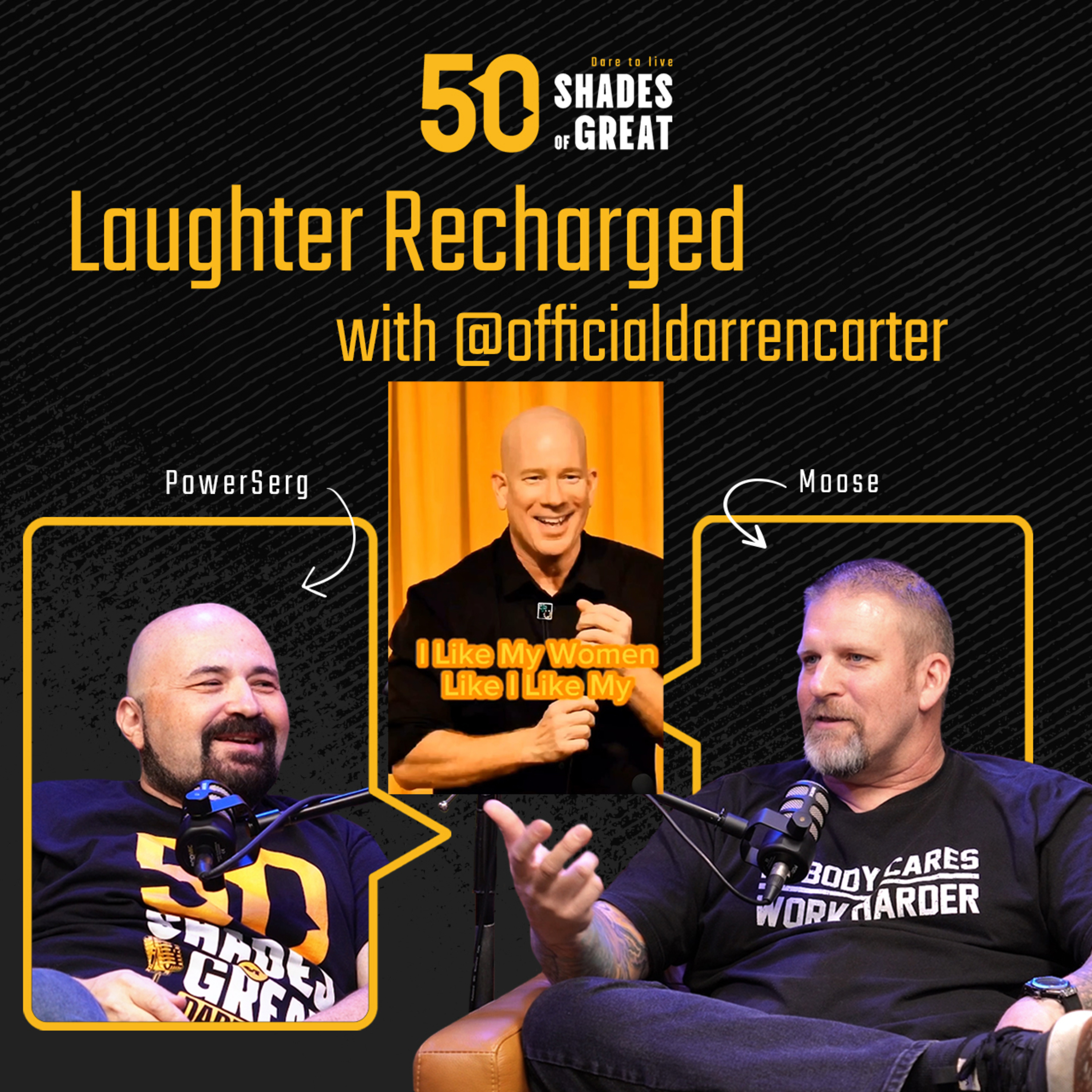 In this newly reimagined episode of "50 Shades of Great - Dare to Live," Moose and PowerSerg reconnect with comedian Darren Carter officialdarrencarter for more laughs, insights, and unforgettable moments. Darren dives into how humor evolves with age, sharing stories from the stage and the wisdom he’s gained along the way. Whether you're looking for a good laugh or inspiration to keep life light and joyful, this episode delivers fresh perspectives and hilarious takes. Get ready to laugh and live your best life! #DareToLive #50ShadesOfGreat