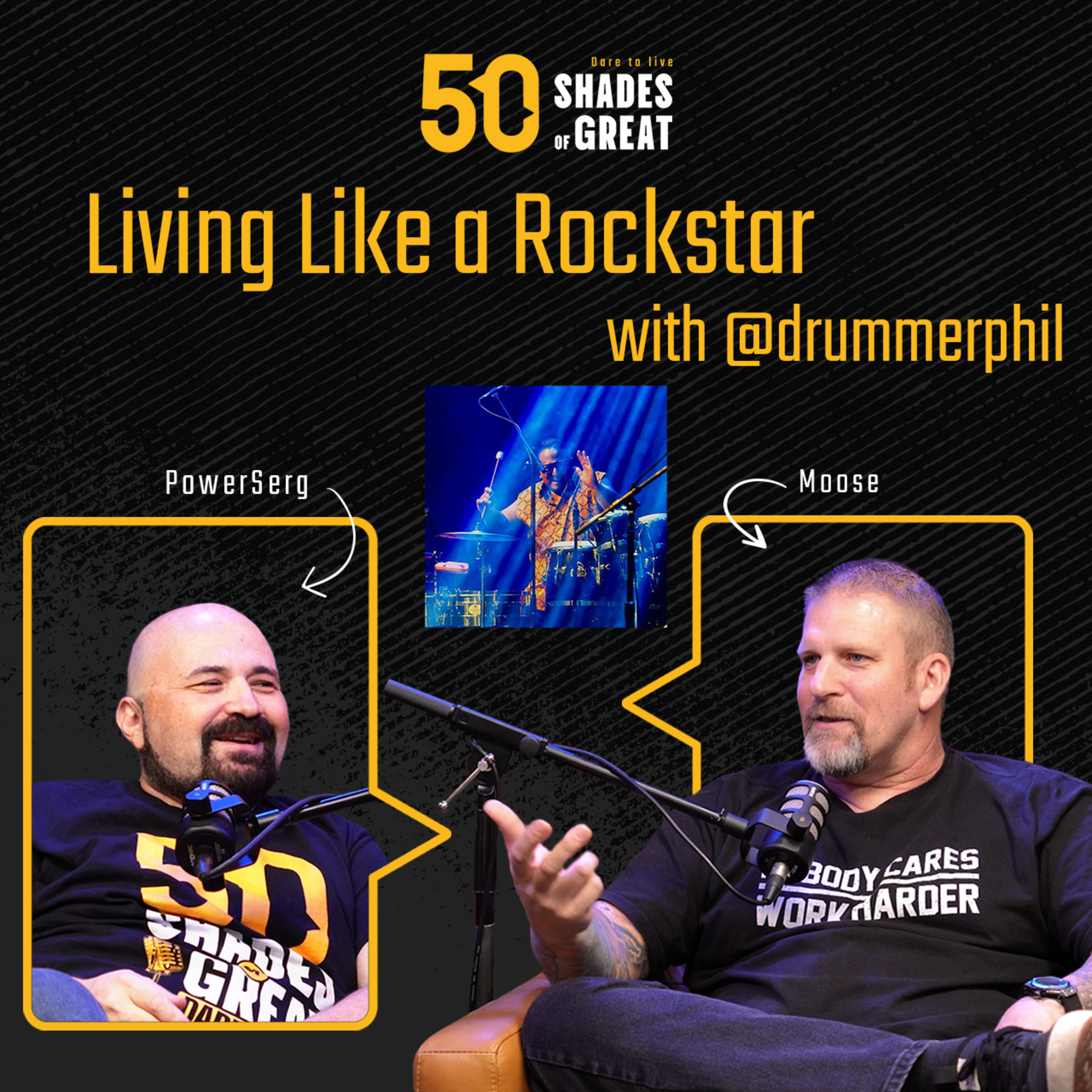 In this episode, Moose and PowerSerg explore the theme of living like a rock star with guest Phil Ruiz (@drummerphil), a seasoned drummer who shares his journey through music, family, and personal growth. The conversation delves into the balance between a vibrant music career and family life, the importance of humility, and the struggles of imposter syndrome. Phil emphasizes the significance of living in the moment, pursuing passions, and leaving a meaningful legacy. The episode concludes with advice for men to dare to live and embrace their true selves. Tune-in and rock on!
