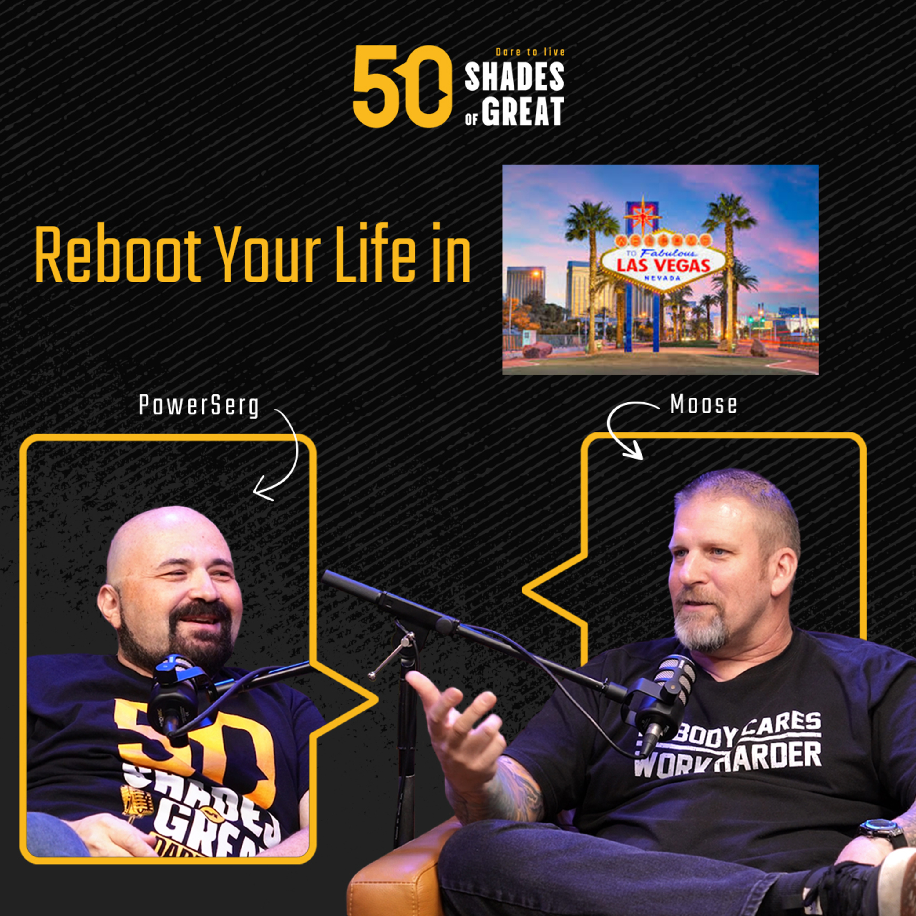 In this exciting episode of "50 Shades of Great - Dare to Live," Moose and PowerSerg take you on a journey through Las Vegas, uncovering how this vibrant city can be the perfect place to hit reset and reboot your life. From new experiences to hidden gems, we explore ways to reignite your passion, embrace change, and find inspiration in the city that never sleeps. Whether you’re looking for a fresh start or just some motivation to shake things up, this episode offers insights on reinventing yourself and living life to the fullest in Las Vegas. Tune in and discover your own path to a life reboot!
