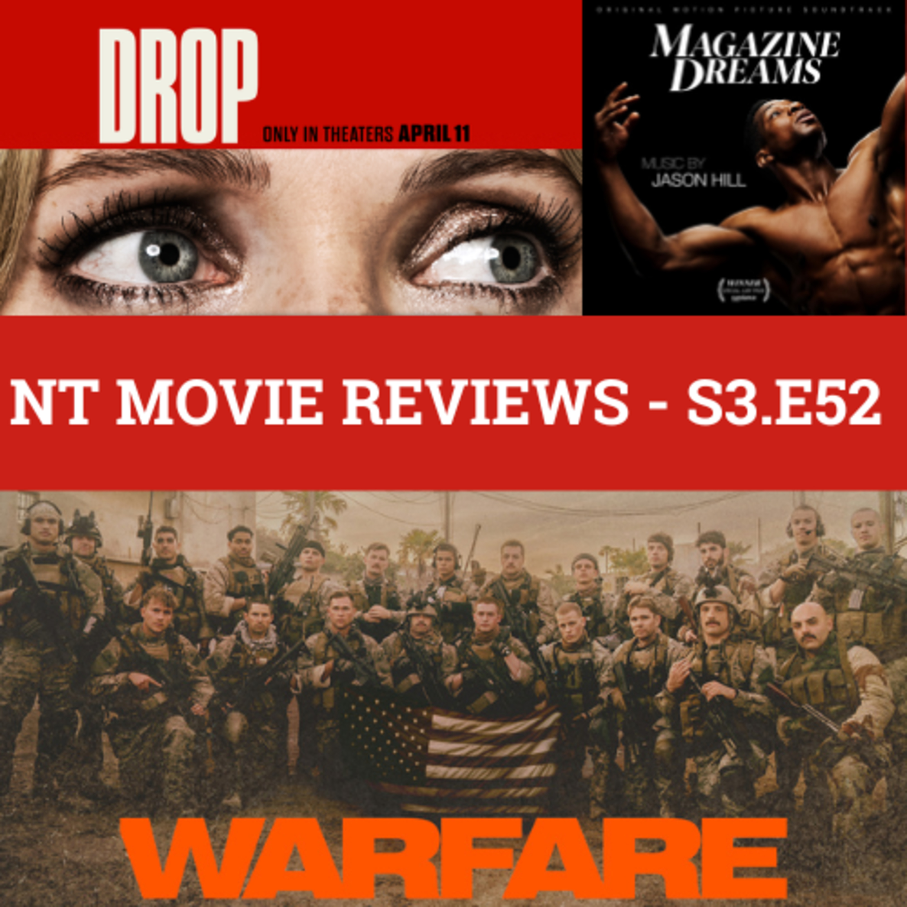 NT Movie Reviews is back with the latest reviews on Alex Garland's "Civil War" follow-up "Warfare", as well as Jonathan Major's long delayed and largely praised "Magazine Dreams" and the campy but enjoyable thriller "Drop".