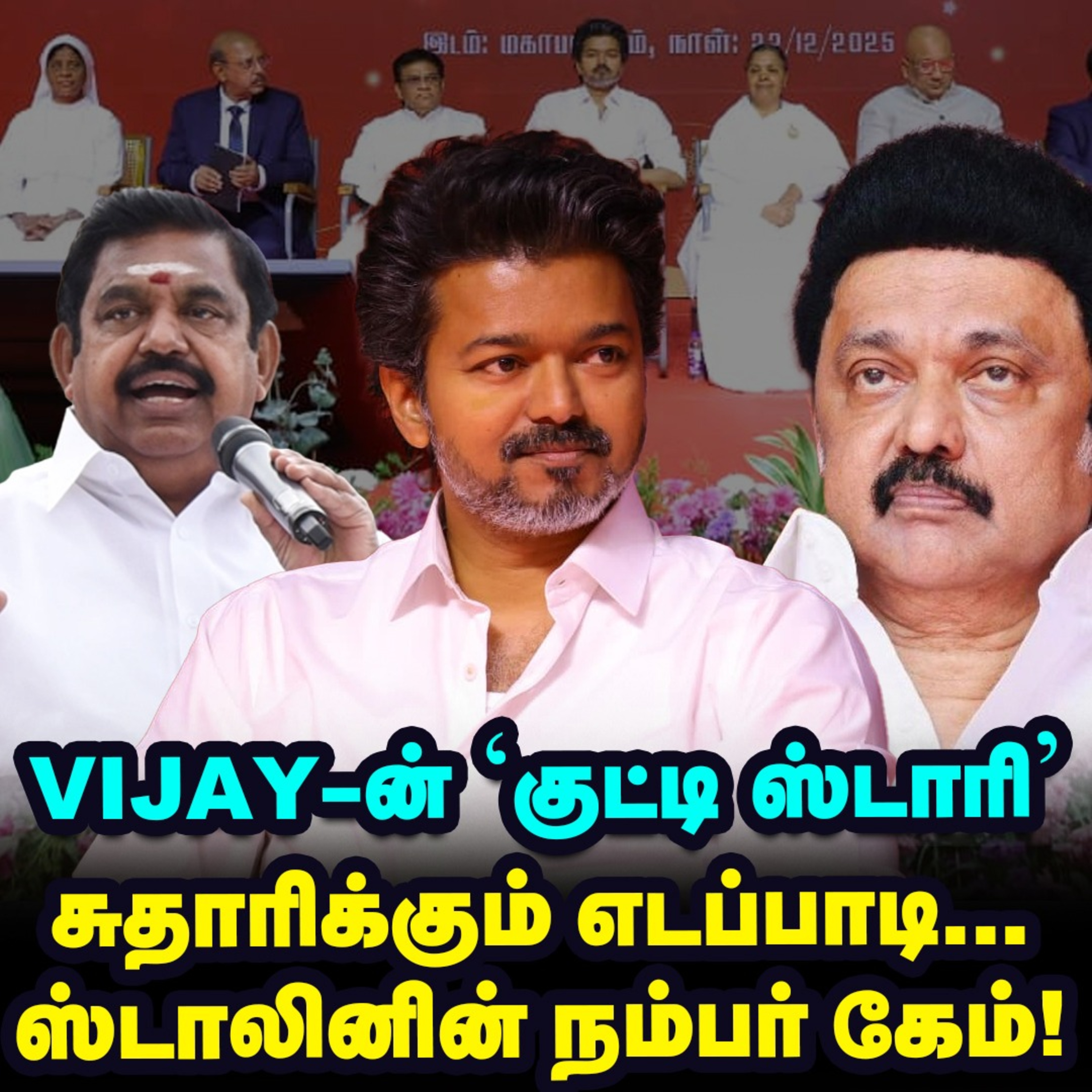 சமத்துவ கிறிஸ்மஸ் விழாவில், விஜய் சொன்ன குட்டி ஸ்டோரி. அதற்கு பின்னால் உள்ள அரசியல் கணக்குகள். Minorities Votes, வலிமையான கூட்டணி என சில திட்டங்கள் வகுக்கப்பட்டுள்ளது. விஜய்யோடு கைகோர்க்க டிடிவி தீவிரம். விஜய்க்கு செக் வைக்கும் எடப்பாடியின் 'நியூ இயர் அசைன்மென்ட்'. இவை எல்லாவற்றையும் கவனத்தில் எடுத்து, மாற்று மைக்ரோ மூவில் மு.க ஸ்டாலின்.