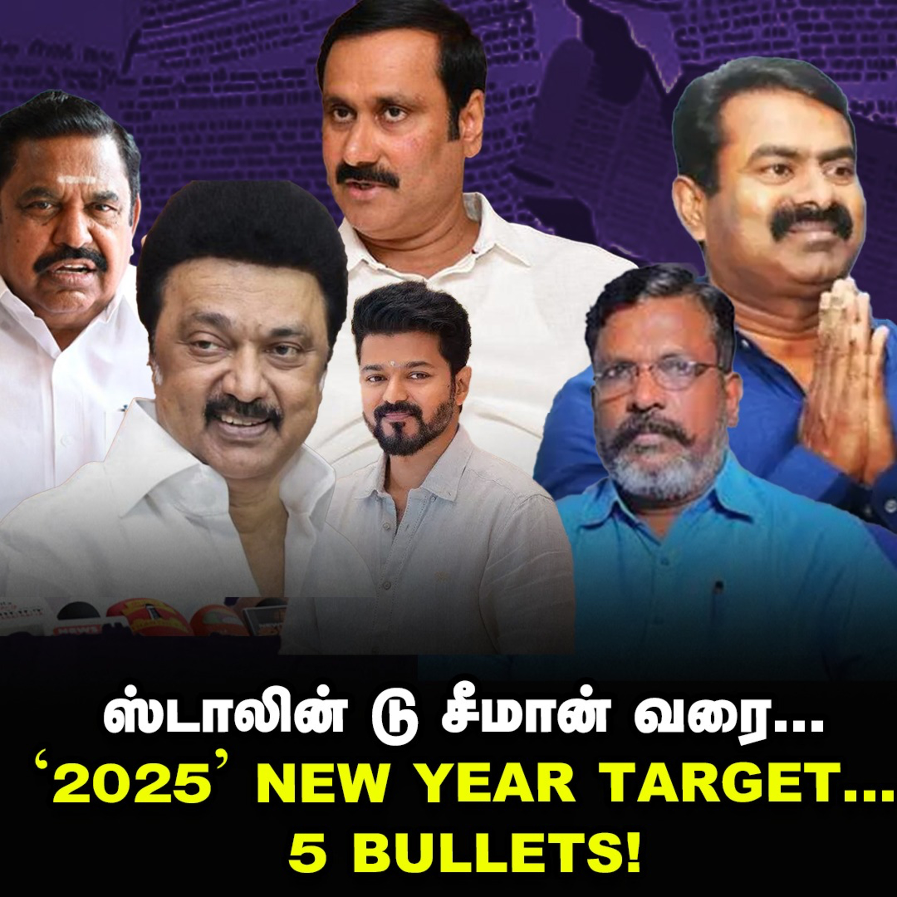 ஸ்டாலின், எடப்பாடி, அன்புமணி, திருமாவளவன், சீமான், விஜய் மற்றும் அண்ணாமலையின் '2025'-ற்கான புத்தாண்டு சபதம். இவர்களின் டார்கெட் என்ன? அதற்காக அவர்கள் வகுத்திருக்கும் வியூகம் என்ன? விரிவாக