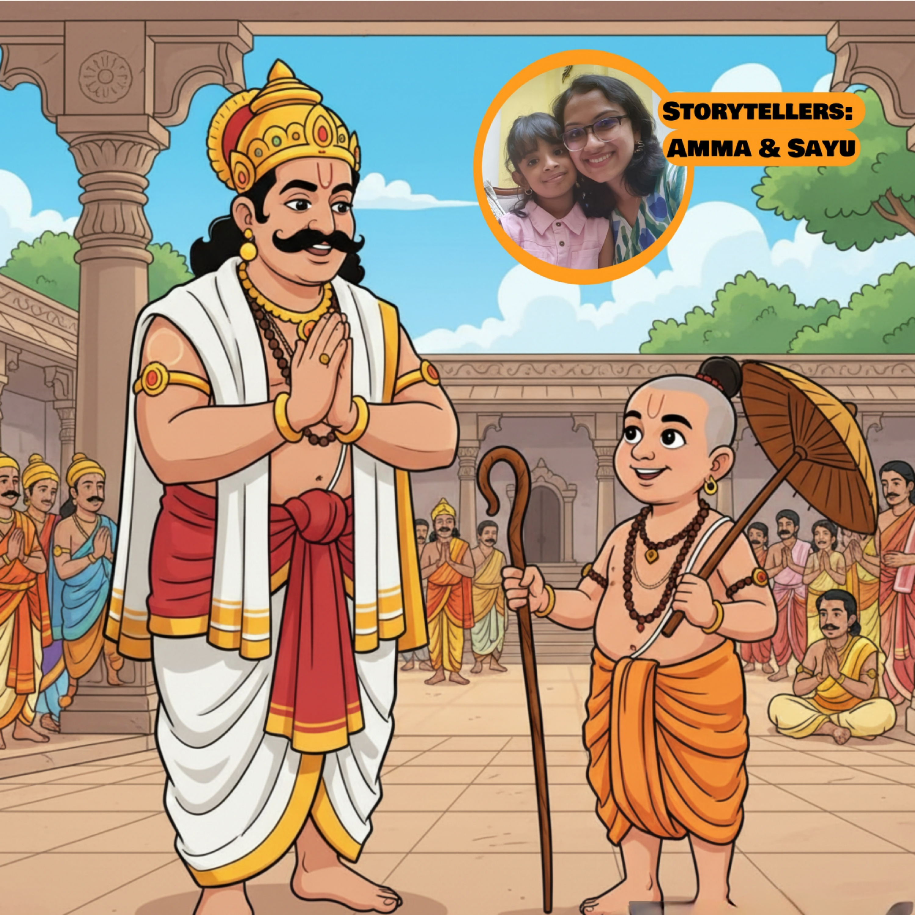 While there are different versions of the Onam legend, this one is the most popular and easiest for children to understand.