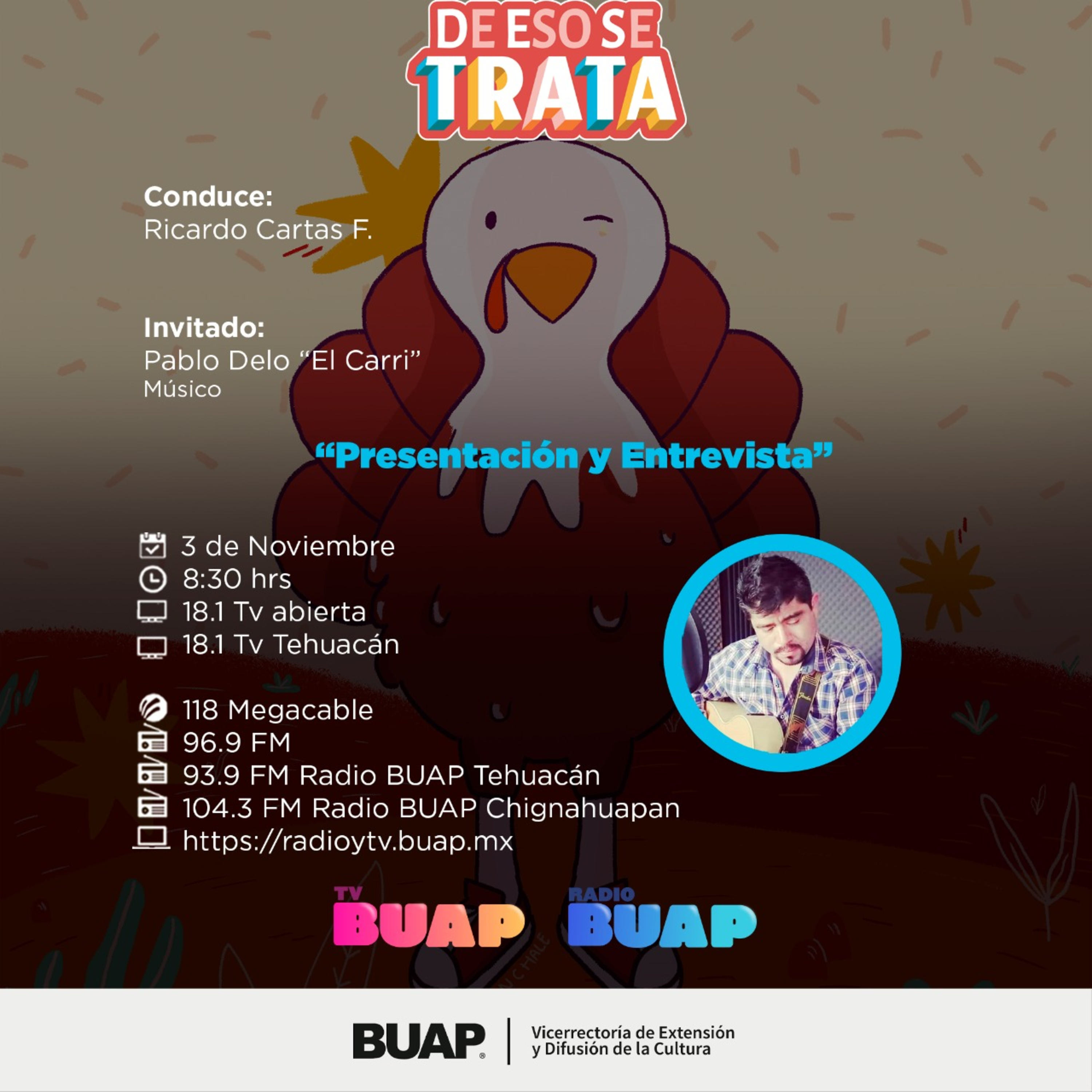 Acompaña a Ricardo Cartas en una emisión más de la revista cultural De eso se trata, espacio de ciencia, de cultura, de gastronomía, de libros y más, de lunes a viernes de 08:30 a 10:00 horas.