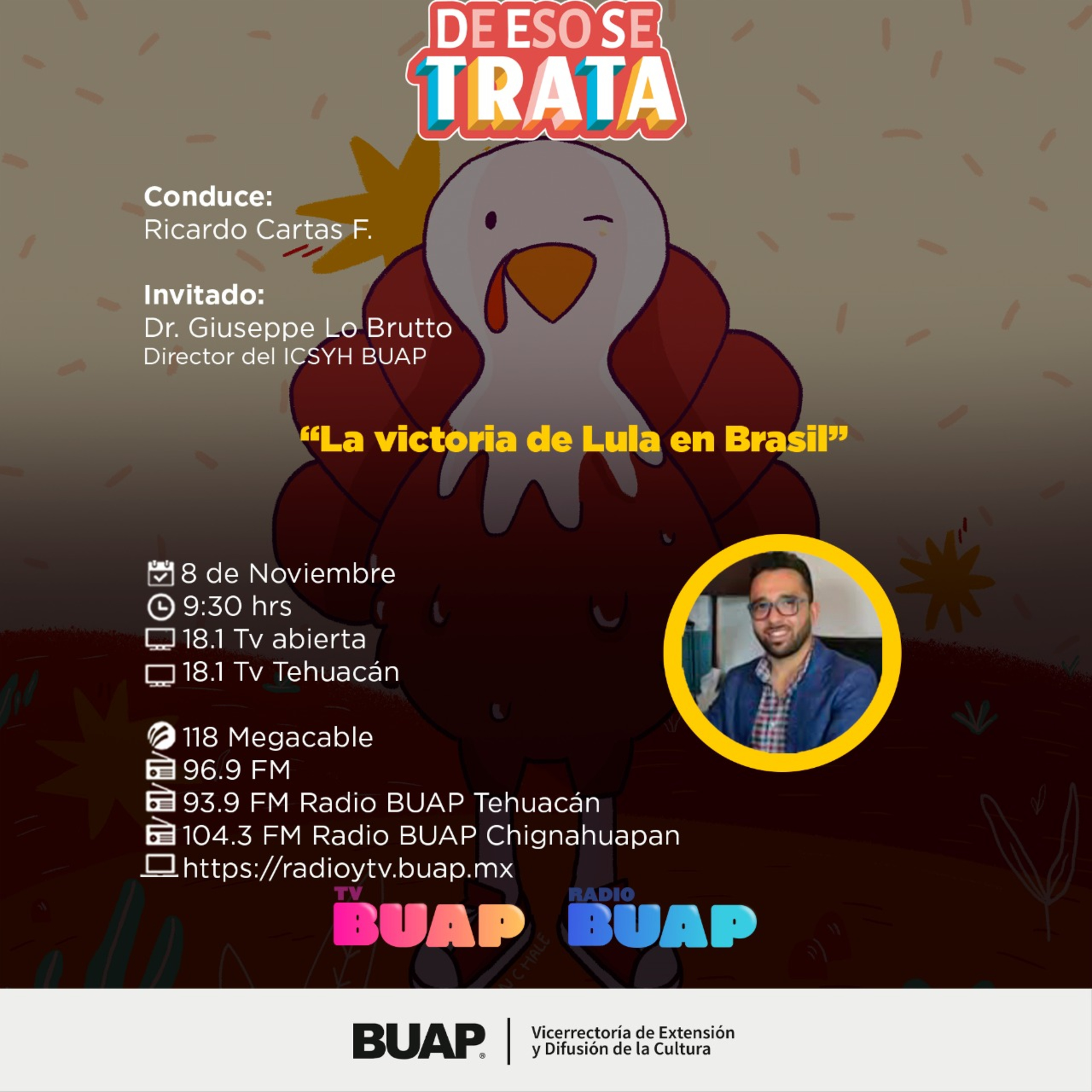 Acompaña a Ricardo Cartas en una emisión más de la revista cultural De eso se trata, espacio de ciencia, de cultura, de gastronomía, de libros y más, de lunes a viernes de 08:30 a 10:00 horas.