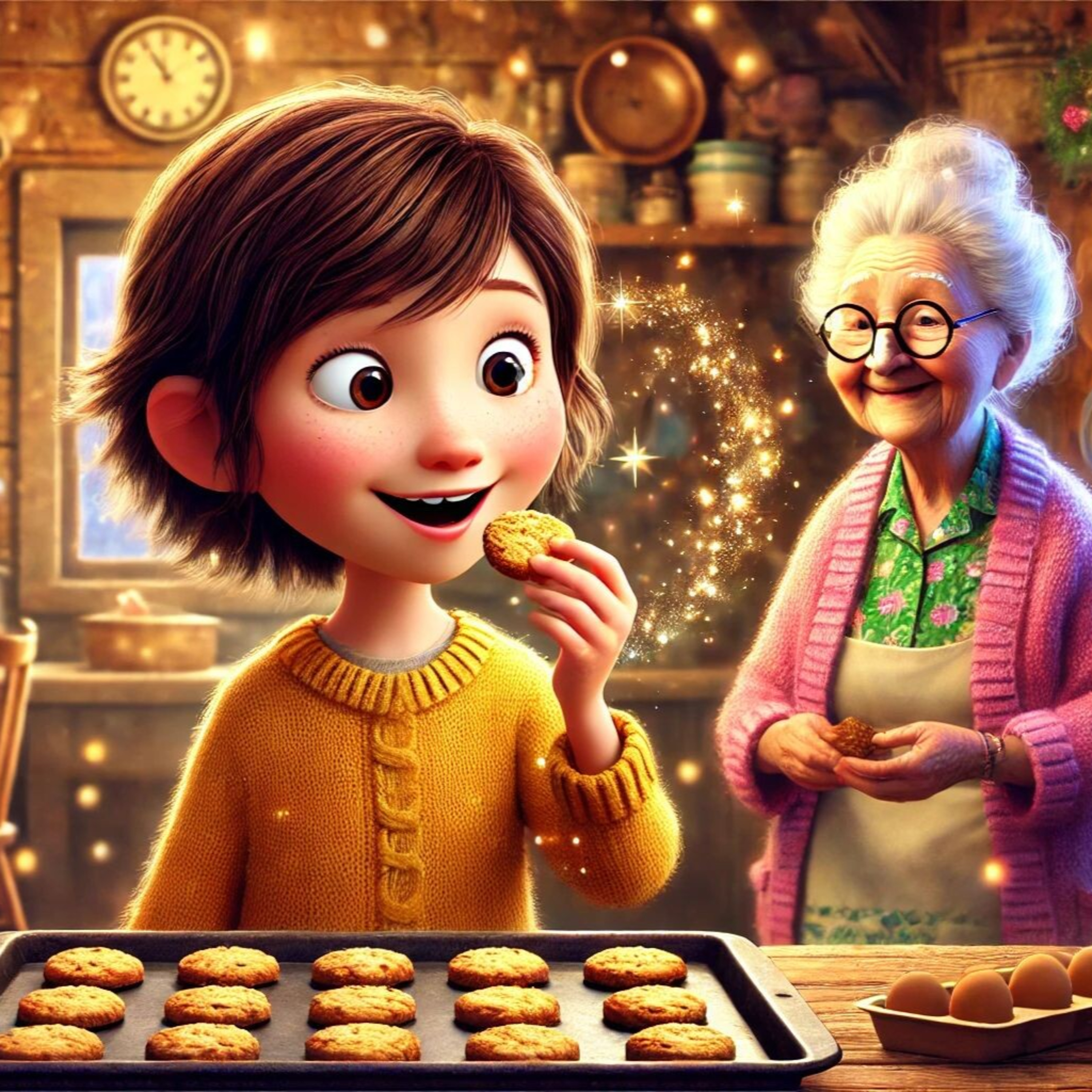 Amelie hilft ihrer Oma beim Backen, als sie auf ein altes Keksrezept stößt. Die Kekse scheinen magische Eigenschaften zu haben, denn jeder, der sie isst, erinnert sich an ein besonderes, glückliches Erlebnis. Amelie erkennt, dass Erinnerungen manchmal die wertvollste Zutat sind.
