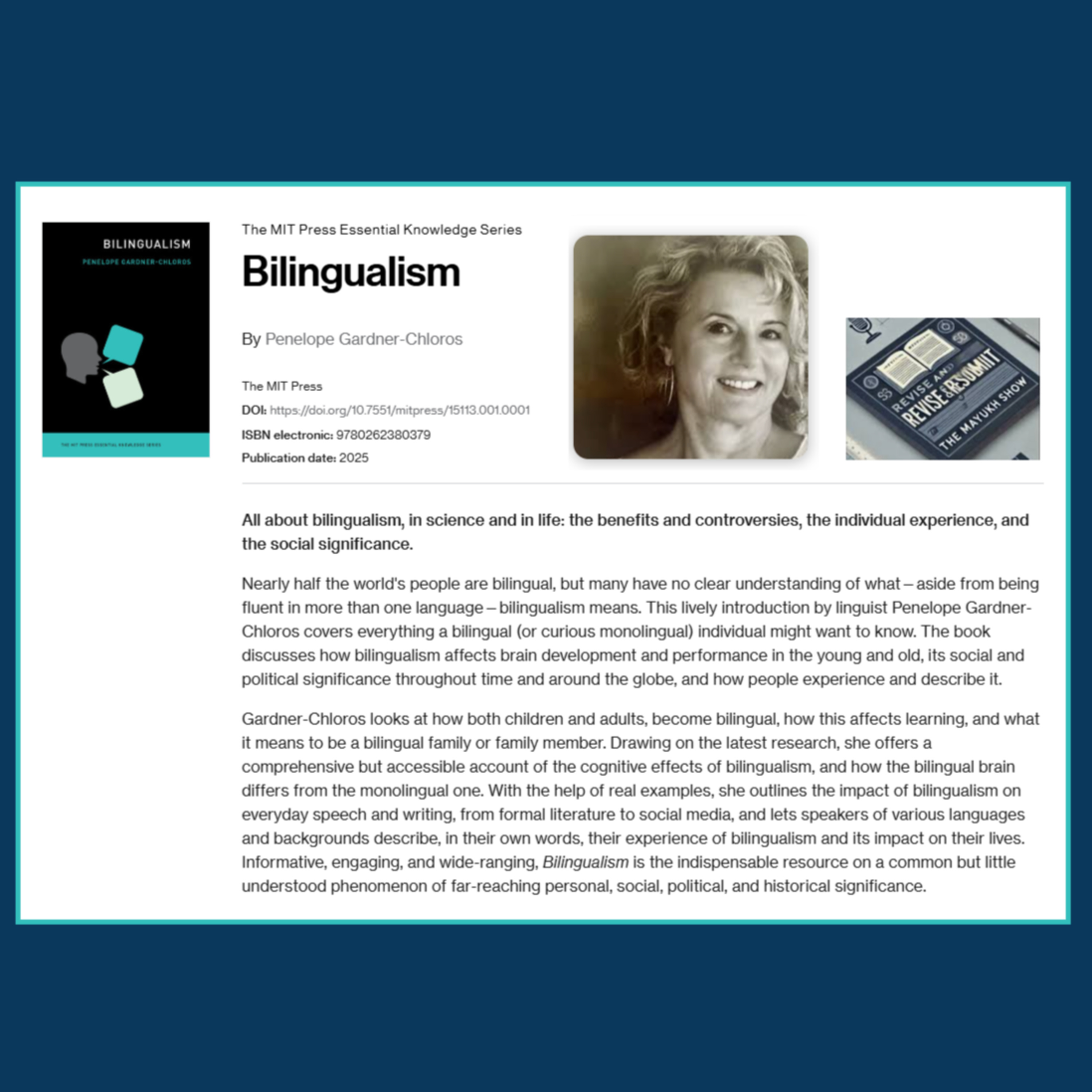 Gardner-Chloros, P. (2025). Bilingualism. The MIT Press. https://doi.org/10.7551/mitpress/15113.001.0001
