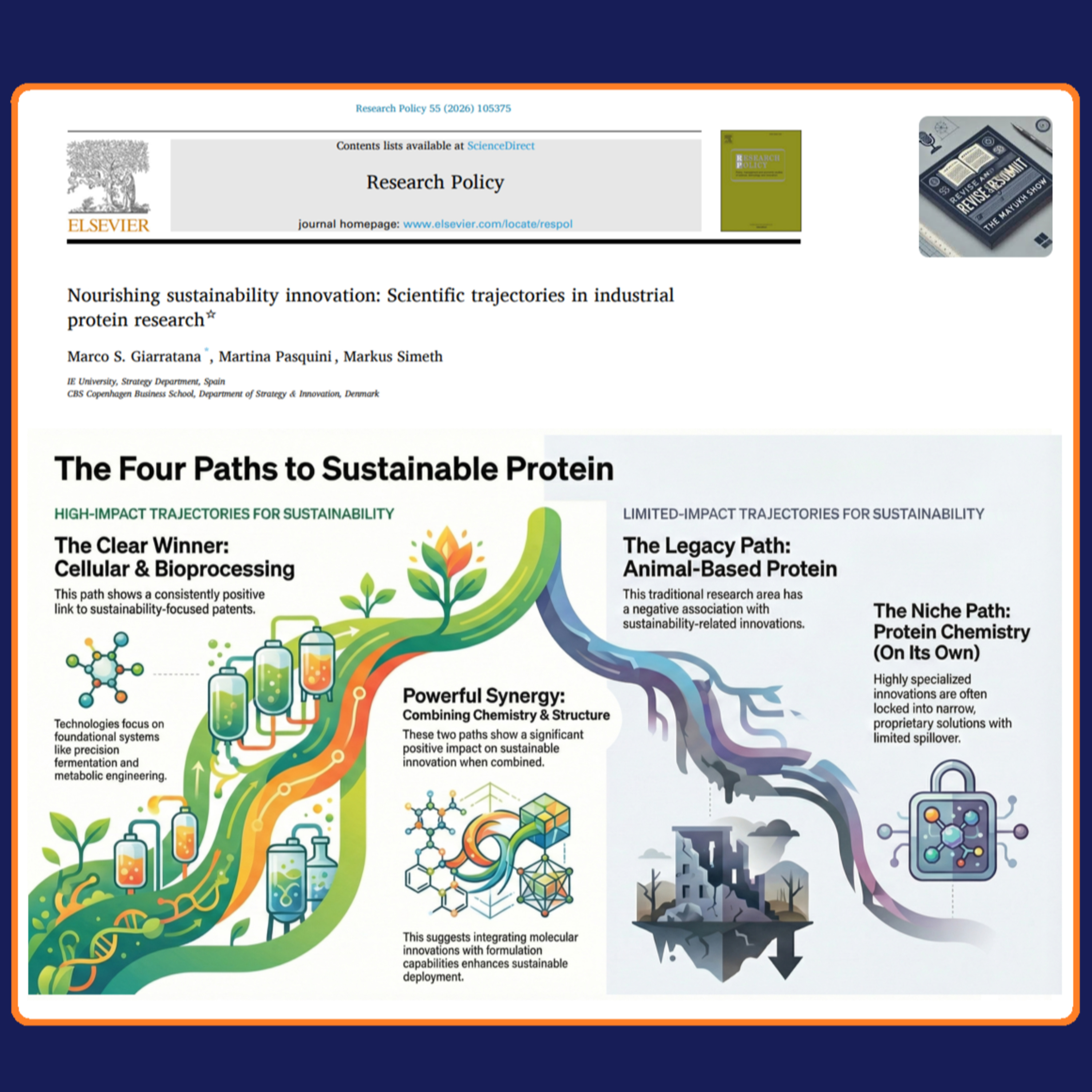 Giarratana, M. S., Pasquini, M., & Simeth, M. (2025). Nourishing sustainability innovation: Scientific trajectories in industrial protein research. Research Policy, 55(2), 105375–105375. https://doi.org/10.1016/j.respol.2025.105375
