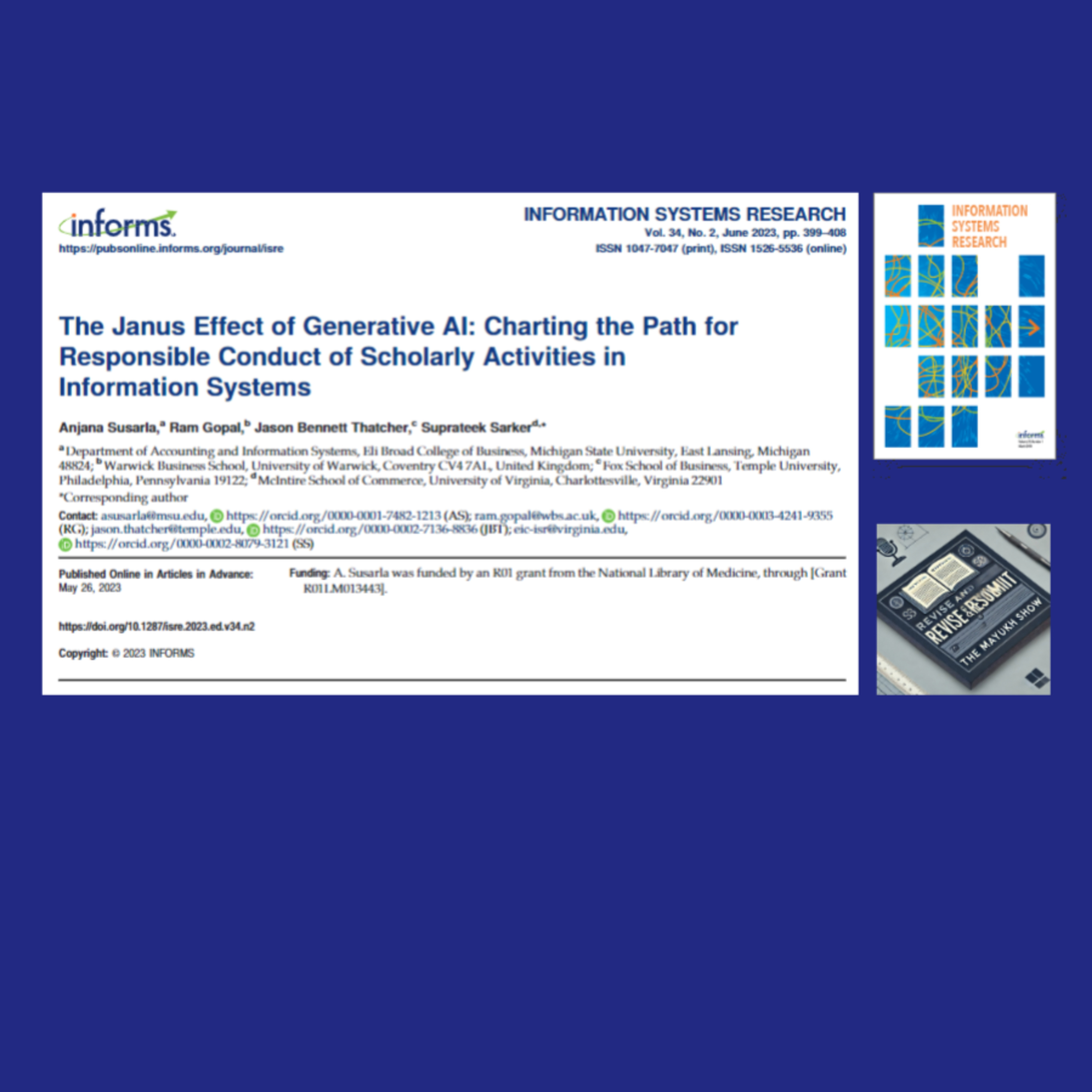 Welcome to Revise and Resubmit. Today, we’re diving into a topic that’s both exhilarating and unsettling—the role of generative AI in shaping the future of scholarly work. Our focus is on the fascinating editorial “The Janus Effect of Generative AI: Charting the Path for Responsible Conduct of Scholarly Activities in Information Systems,” authored by Anjana Susarla, Ram Gopal, Jason Bennett Thatcher, and Suprateek Sarker, and published in the prestigious FT50 journal Information Systems Research by INFORMS.