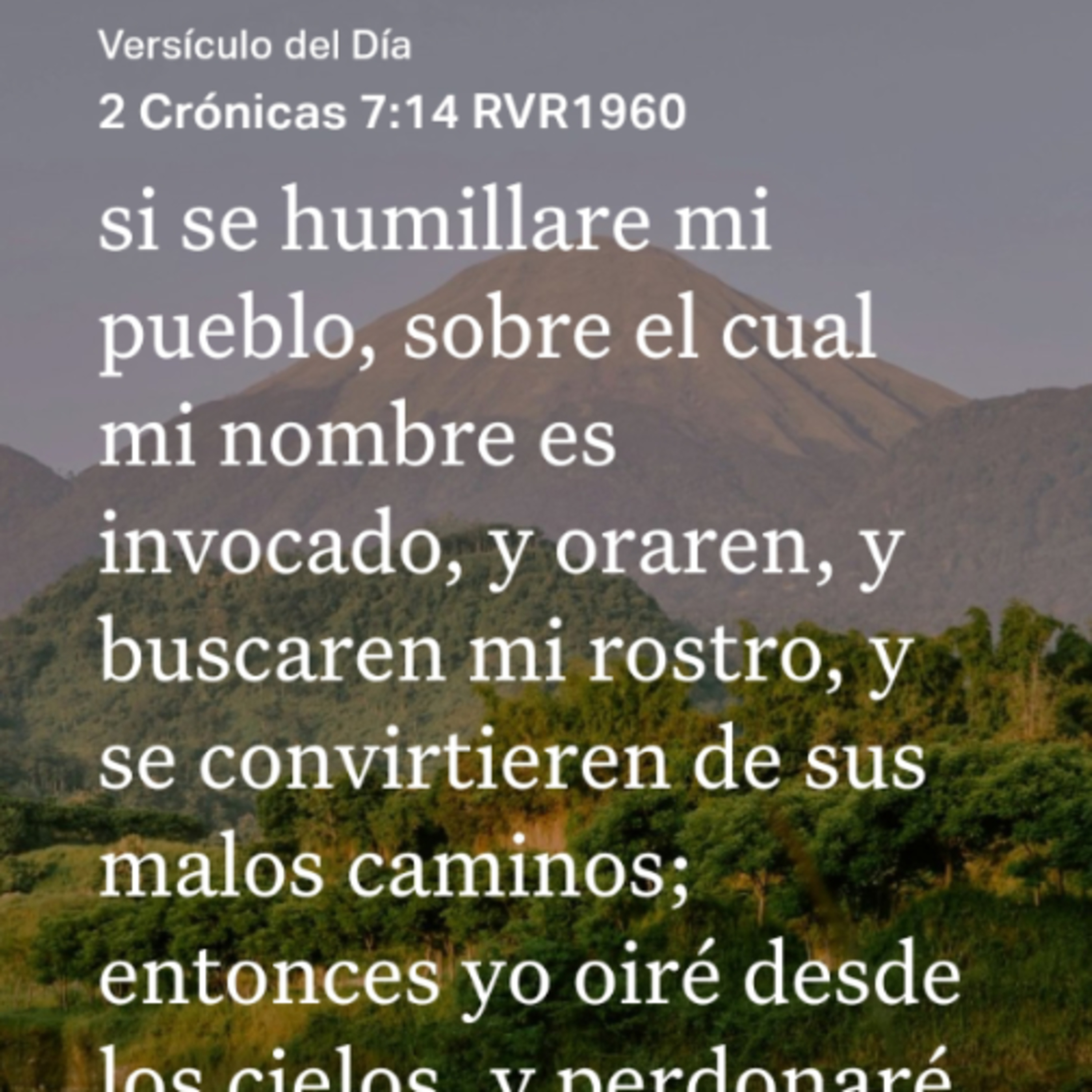 [14] si se humillare mi pueblo, sobre el cual mi nombre es invocado, y oraren, y buscaren mi rostro, y se convirtieren de sus malos caminos; entonces yo oiré desde los cielos, y perdonaré sus pecados, y sanaré su tierra.