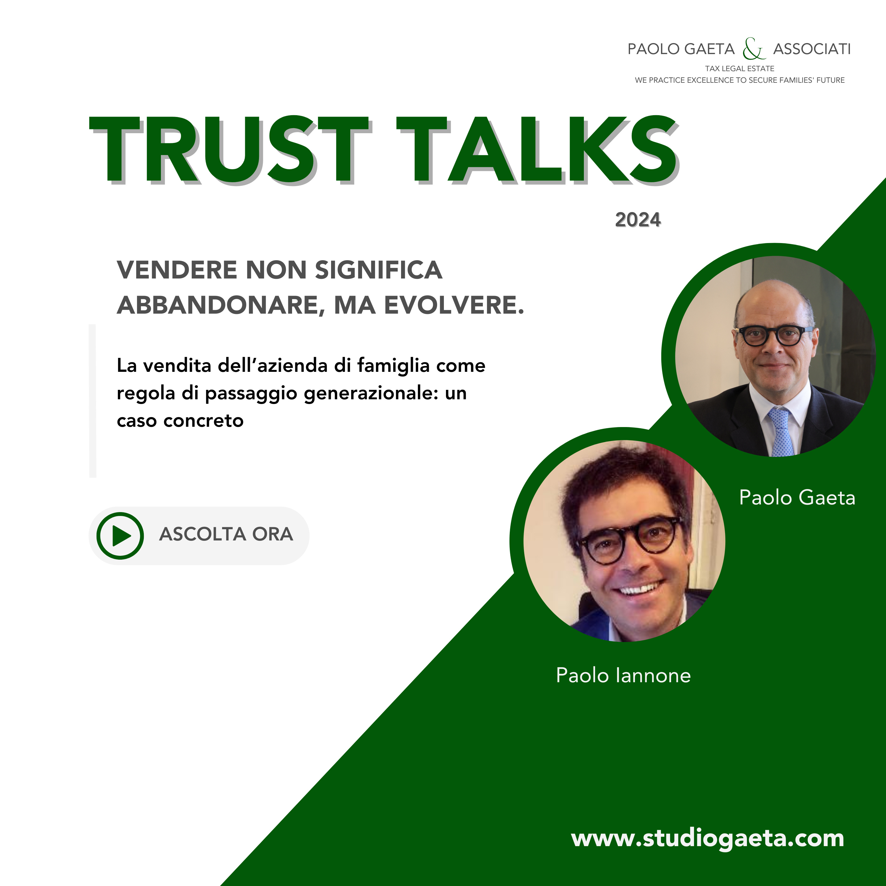 Talks sul sito web di Paolo Gaeta Associati o su Spotify. Per domande e suggerimenti, contatta lo