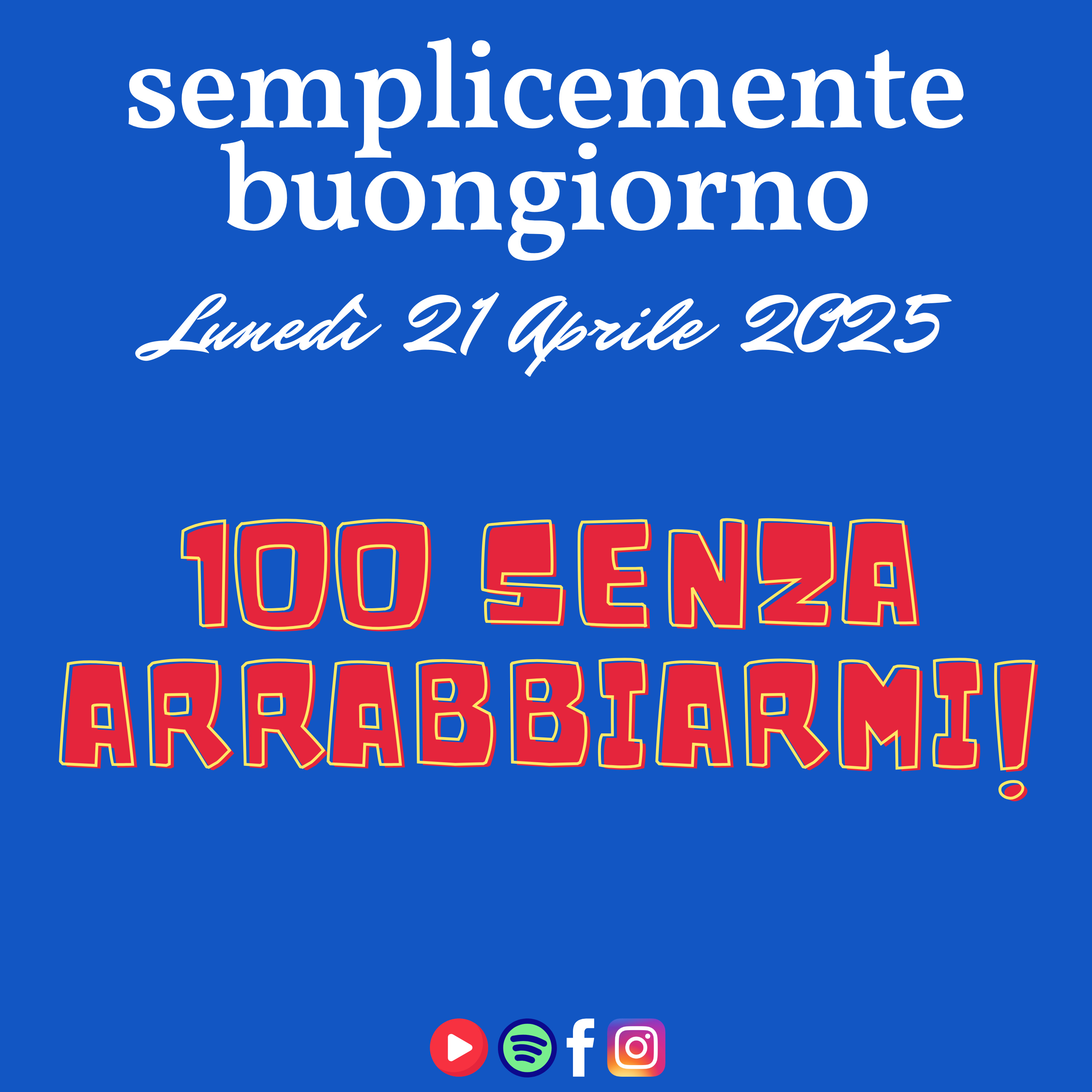 🎙️ Benvenuti a Semplicemente Buongiorno di Lunedì 21 Aprile 2025! 🌞 Oggi inizia un percorso speciale: 100 giorni senza arrabbiarmi! 💯✨