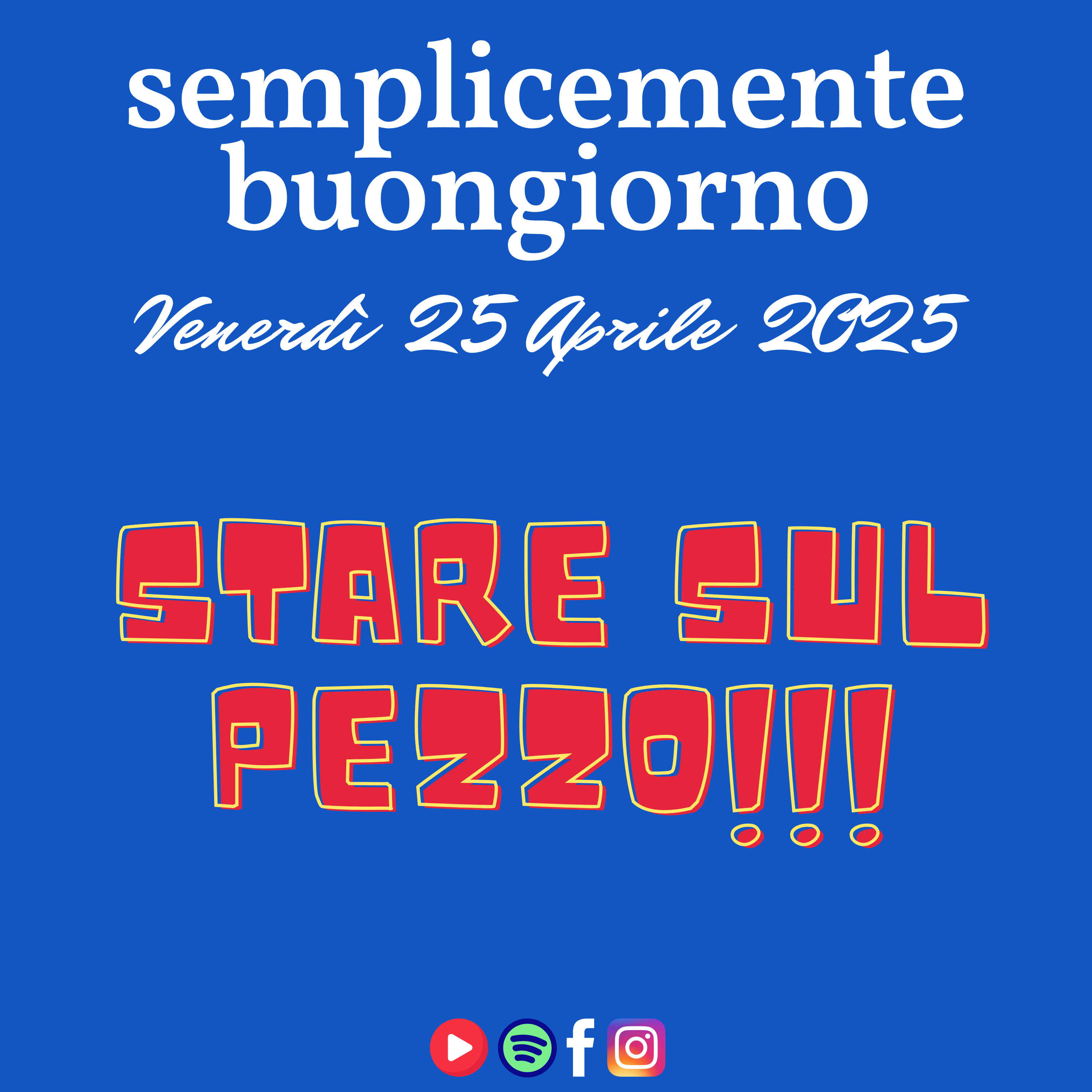 Oggi è venerdì, 25 aprile 2025, e siamo pronti a darvi la giusta carica prima del weekend. 🔥 Il tema di oggi è "Stare sul pezzo" – scopriamo insieme come mantenere focus, grinta e determinazione per superare ogni sfida e raggiungere i nostri obiettivi.