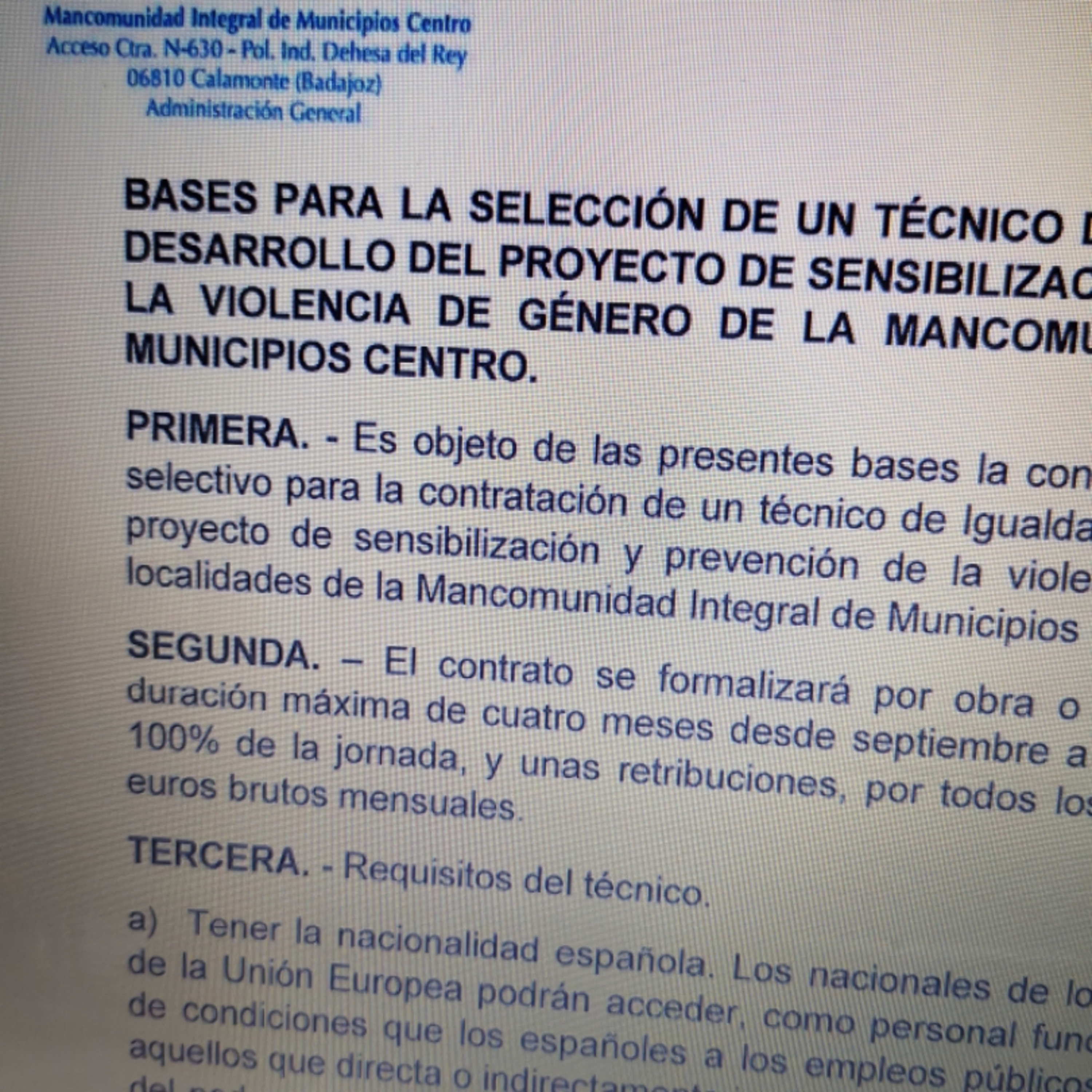 Bases Selección Técnico Igualdad