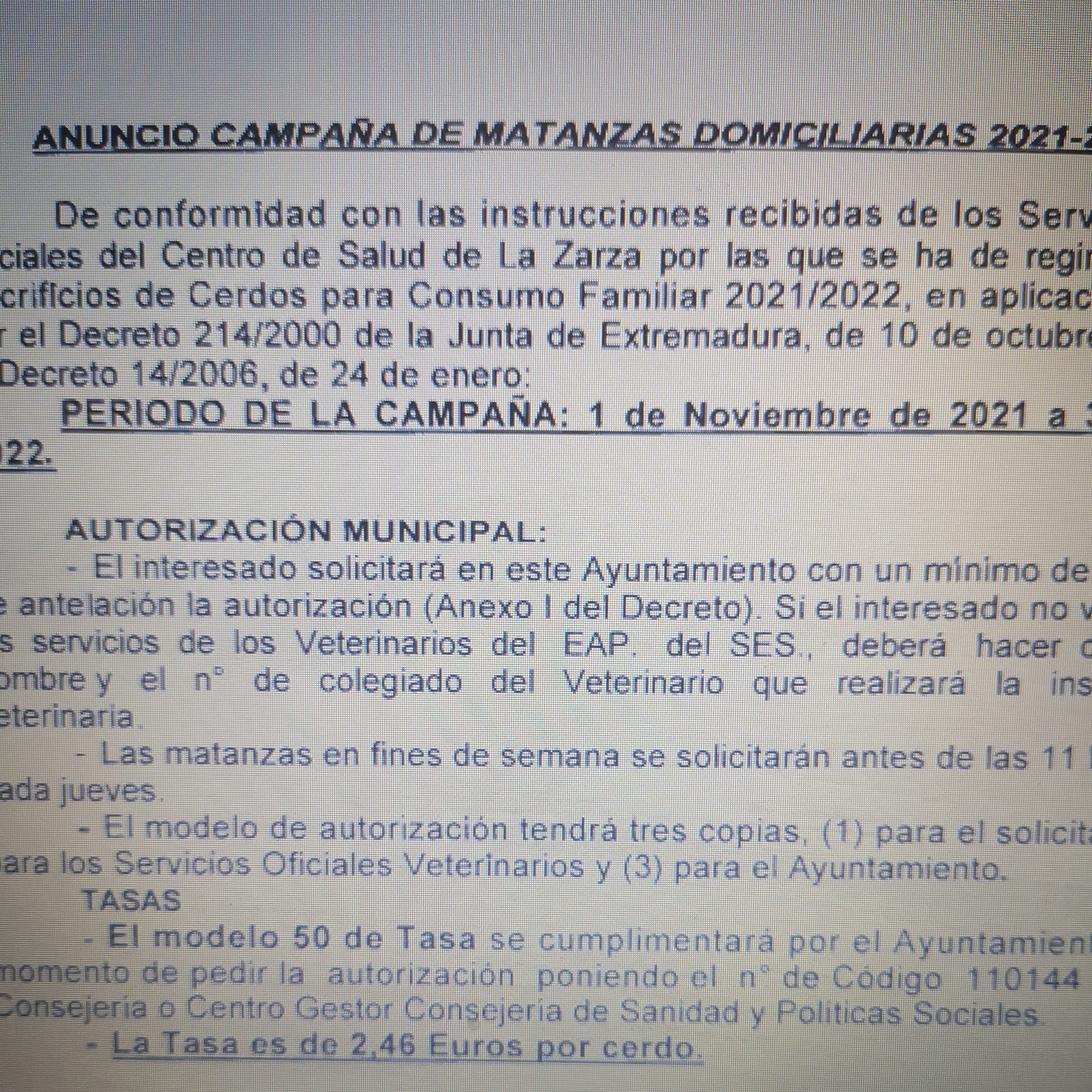 Campaña de Matanzas Domiciliarias 2021 - 2022