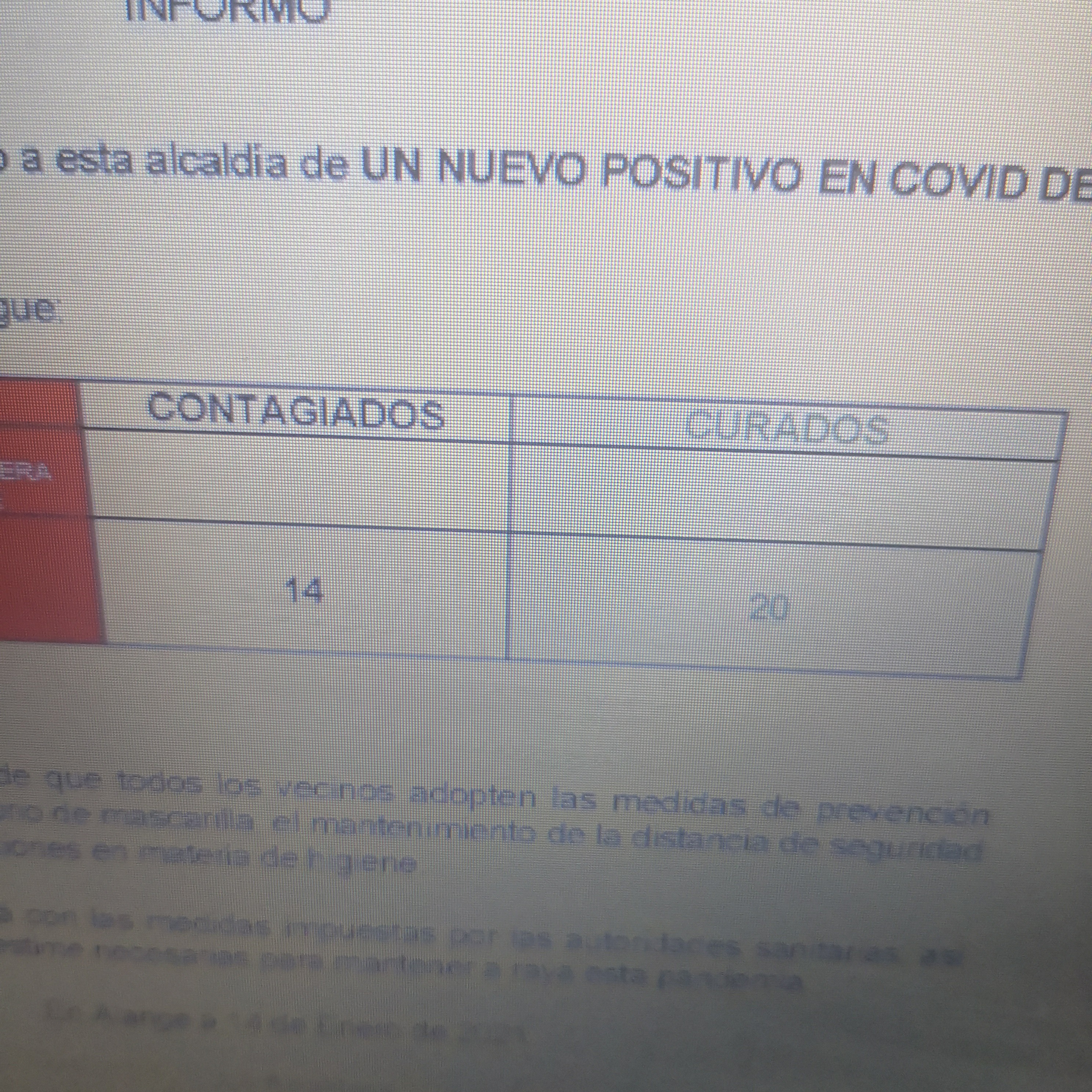 Nuevo Positivo de Covid en nuestra localidad