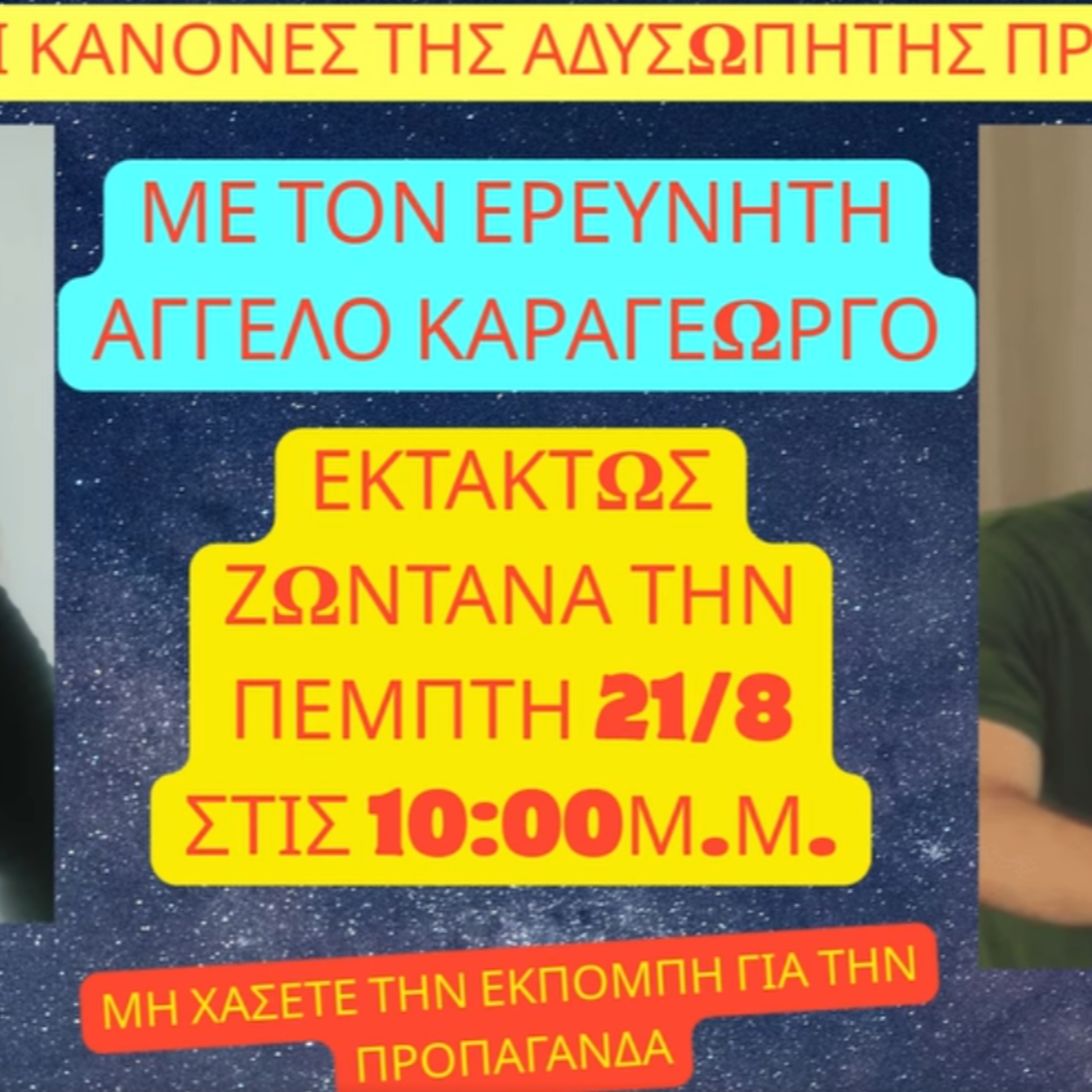 Με τη Μαρία Γλαρέντζου στην εκπομπή της ΑΛΗΘΙΝΕΣ ΚΟΥΒΕΝΤΕΣ στη νέα εκπομπή μας με τίτλο "ΟΙ ΜΥΣΤΙΚΟΙ ΚΑΝΟΝΕΣ ΤΗΣ ΑΔΥΣΩΠΗΤΗΣ ΠΡΟΠΑΓΑΝΔΑΣ" φέραμε στο φως τις πρακτικές μεθόδους που χρησιμοποιούν οι σατανικές δυνάμεις για να διαμορφώσουν την αντίληψη μας, να επηρεάσουν τη βούληση μας και εν τέλει να καθορισουν τις πράξεις μας εν πλήρει αγνοία των περισσοτέρων ανθρώπων ελπίζοντας πως θα οδηγήσουν την ανθρωπότητα εκεί που ποθούν διαστρεβλώνοντας την ίδια την ηθική.