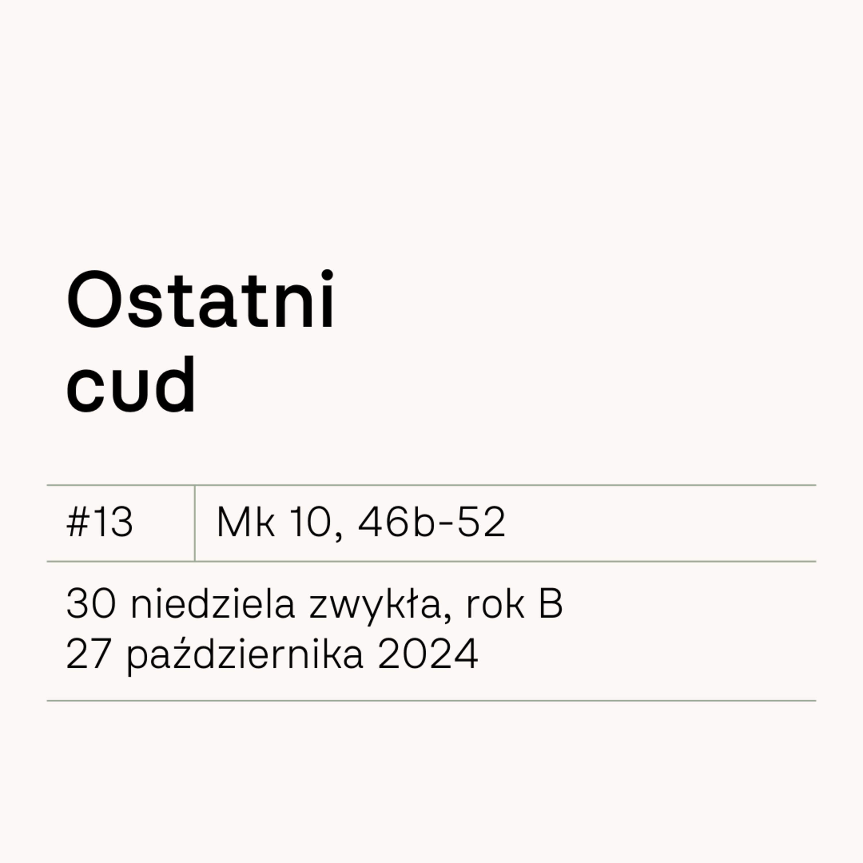 #13 Ostatni cud | Mk 10, 46b-52 | 27 października 2024 | 30 Niedziela zwykła, rok B.