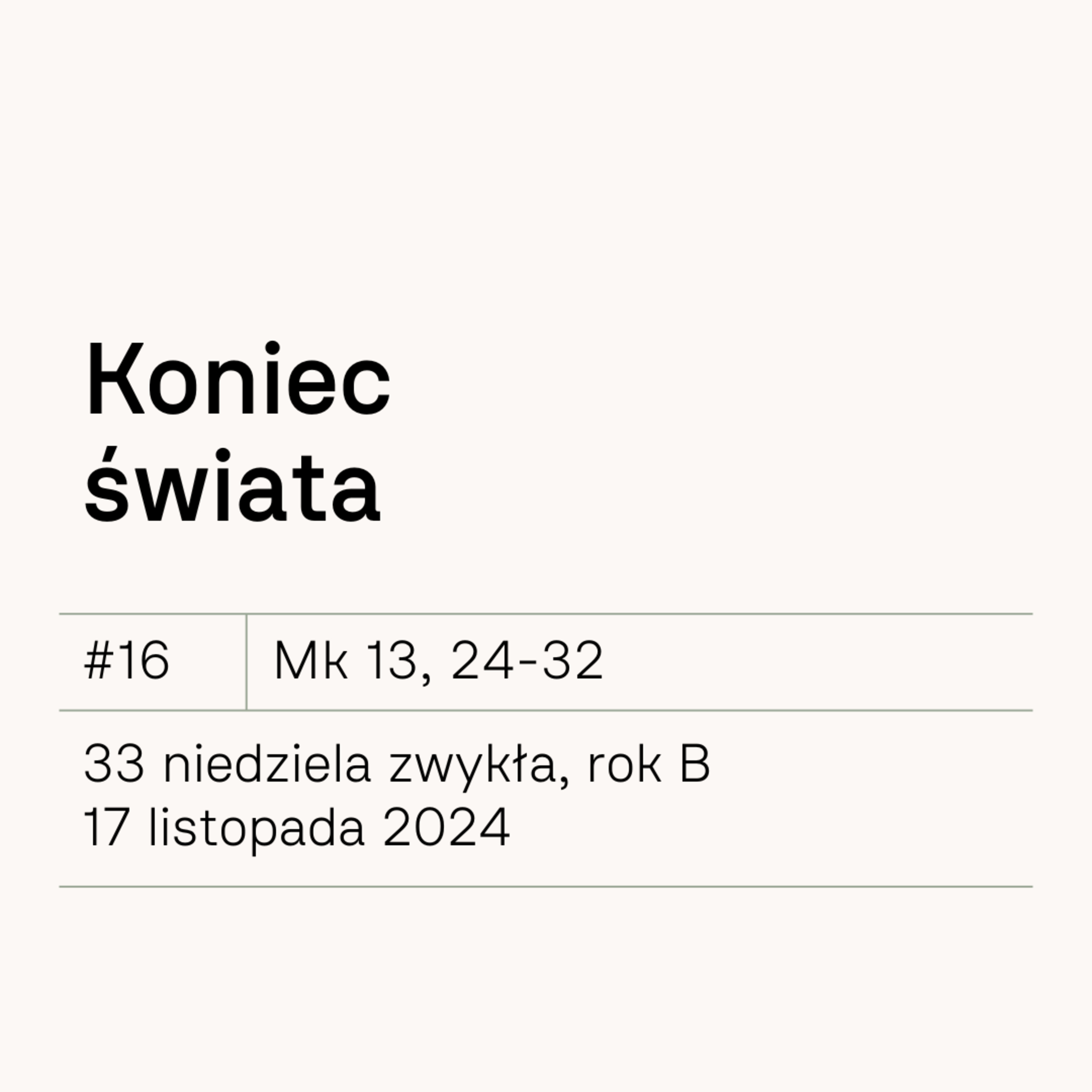 #16 Koniec świata | Mk 13,24-32 | 17 listopada 2024 | 33 Niedziela zwykła, rok B