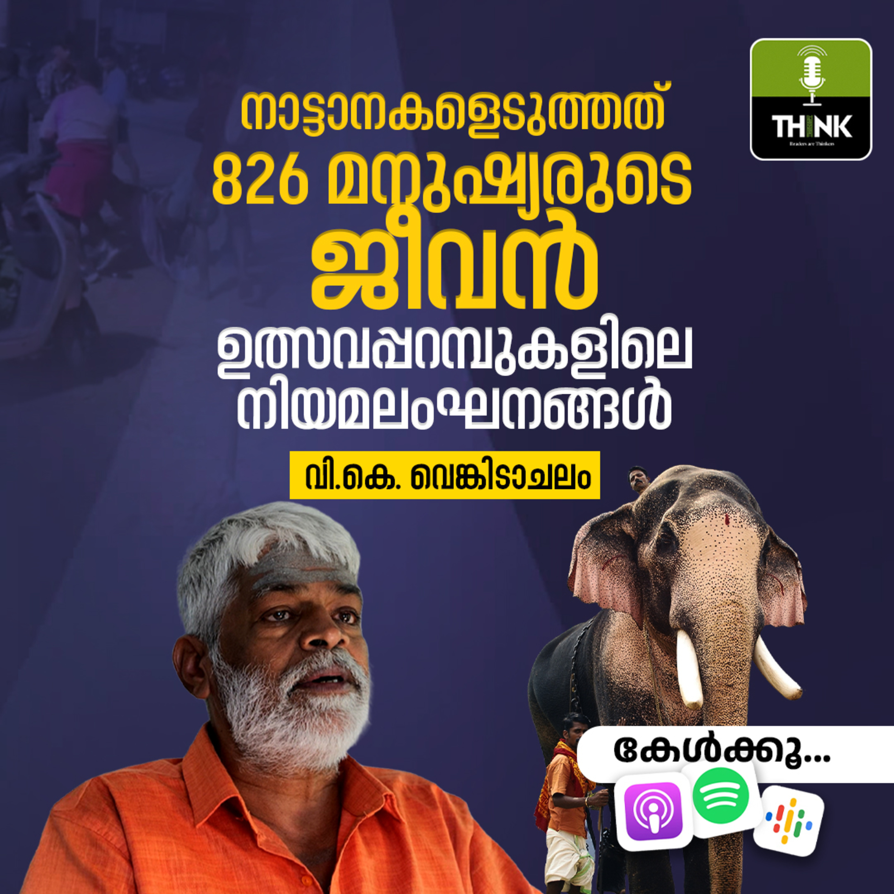 1997 മുതൽ 2025 ഫെബ്രുവരി ആദ്യ ആഴ്ച വരെ കേരളത്തിൽ 826 പേരാണ് ഉത്സവങ്ങൾക്കിടയിൽ ആനകളിടഞ്ഞതിനെതുടർന്ന് കൊല്ലപ്പെട്ടത്. 4000-ലേറെ പേർ ഗുരുതര പരിക്കുകളോടെ കിടപ്പിലാണ്. ആനകളെ ഉപയോഗിച്ച് കോടികൾ ലാഭമുണ്ടാക്കുന്ന വൻ മാഫിയയാണ് ഈ മരണങ്ങളുടെ ഉത്തരവാദികളെന്ന് തെളിവുകൾ നിരത്തി വെളിപ്പെടുത്തുകയാണ്, 1997 മുതൽ ഉത്സവ മാഫിയയെ തുറന്നുകാട്ടാൻ നിയമപോരാട്ടം നടത്തുന്ന വി.കെ. വെങ്കിടാചലം.