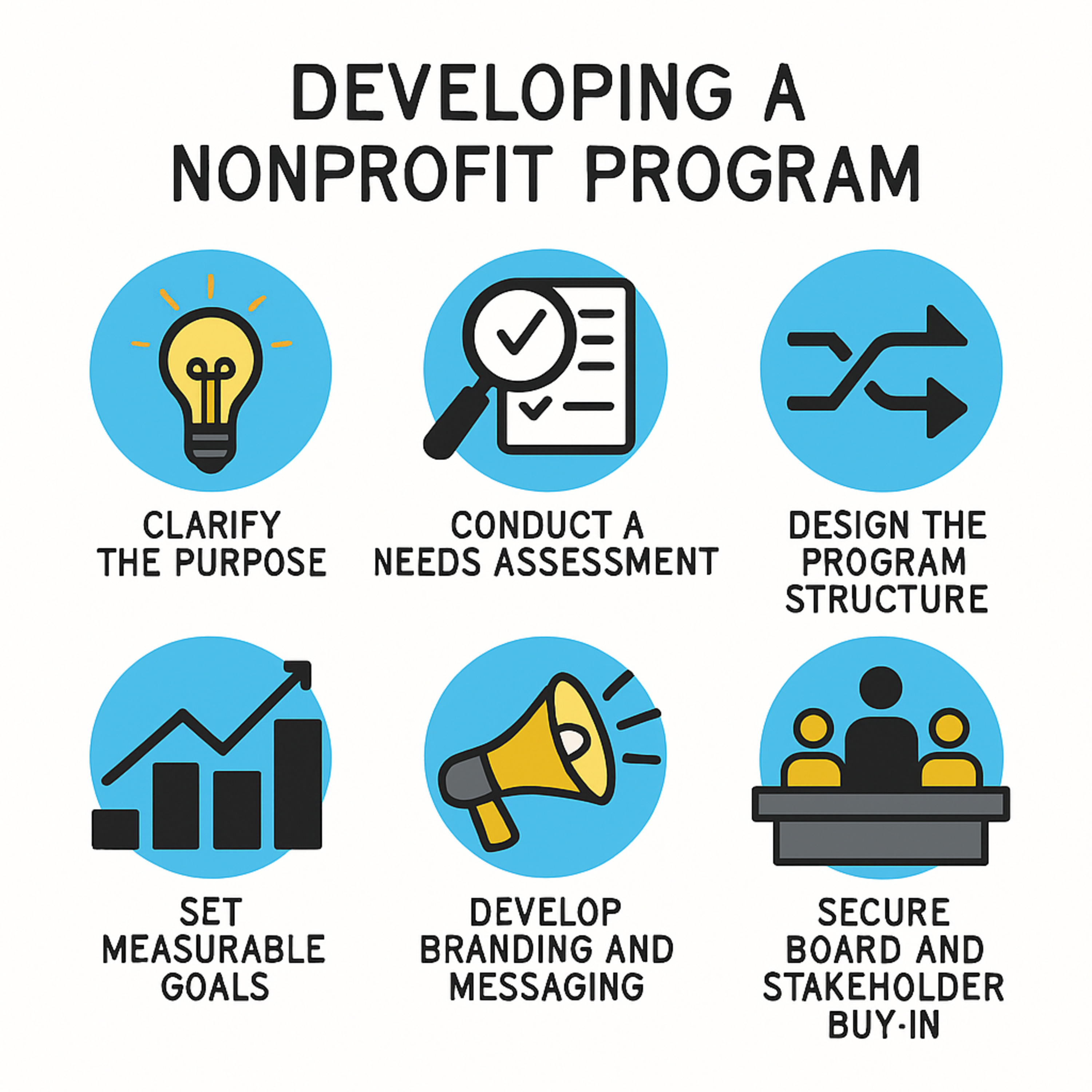 The provided sources offer a comprehensive guide to nonprofit program development and the use of "Doing Business As" (DBA) names. Multiple documents outline the systematic process for creating successful programs, which involves clarifying purpose, conducting needs assessments, designing program structure, and ensuring board approval and ongoing monitoring and evaluation. Crucially, the sources address the legal and branding aspects of operating programs, confirming that nonprofits are permitted to use a DBA or trade name to better align with outreach efforts, provided they satisfy state filing procedures and avoid trademark infringement. Finally, the texts stress that using a DBA does not alter the nonprofit's legal status or tax-exempt standing, requiring all activities under the alternate name to remain consistent with the organization's 501(c)(3) purpose.