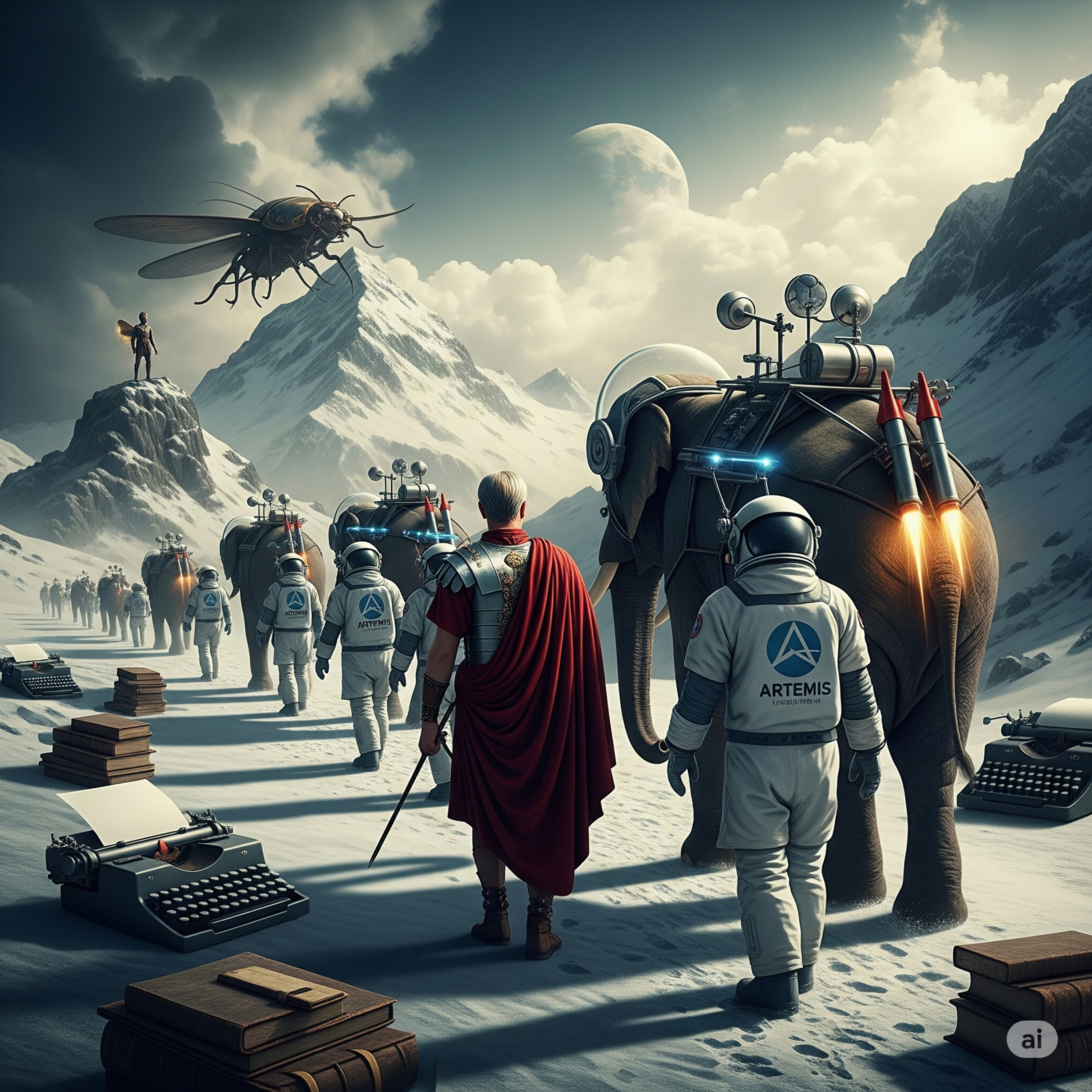 Los anfitriones IA Goldie y Marvin conversan sobre el Cruce de los Alpes de Anibal Barca, el Programa Artemís de la NASA y Franz Kafa ⛰️🐘🛰️🪳