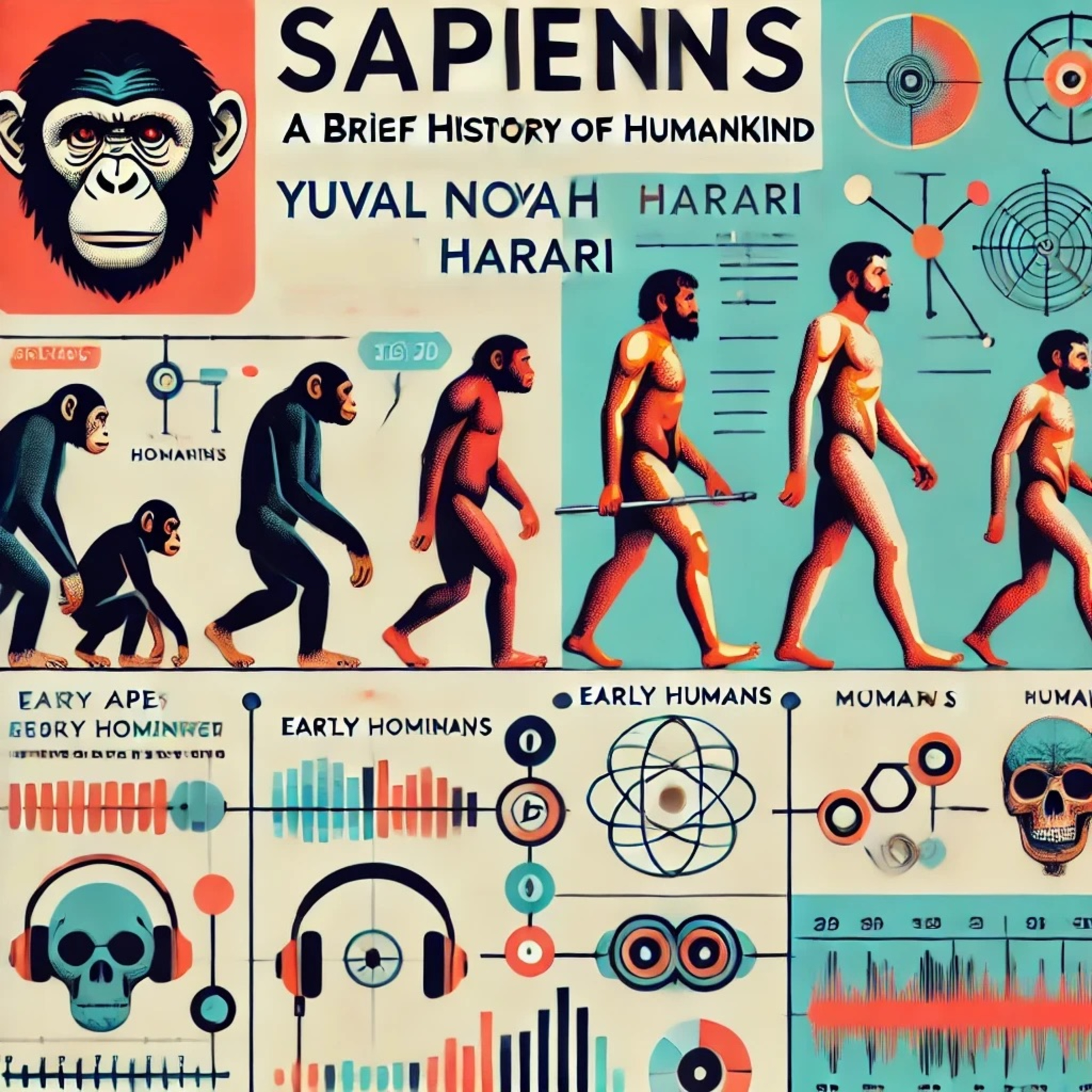 The episode explores the history of Homo sapiens, starting with the Big Bang and focusing on the Cognitive Revolution. It examines how Homo sapiens spread across the globe, contributing to the extinction of other human species and various animal populations. The text highlights the unique cognitive abilities of Homo sapiens, particularly their capacity for creating and believing in collective fictions. This ability enabled unprecedented cooperation and cultural adaptation, but also led to ecological devastation