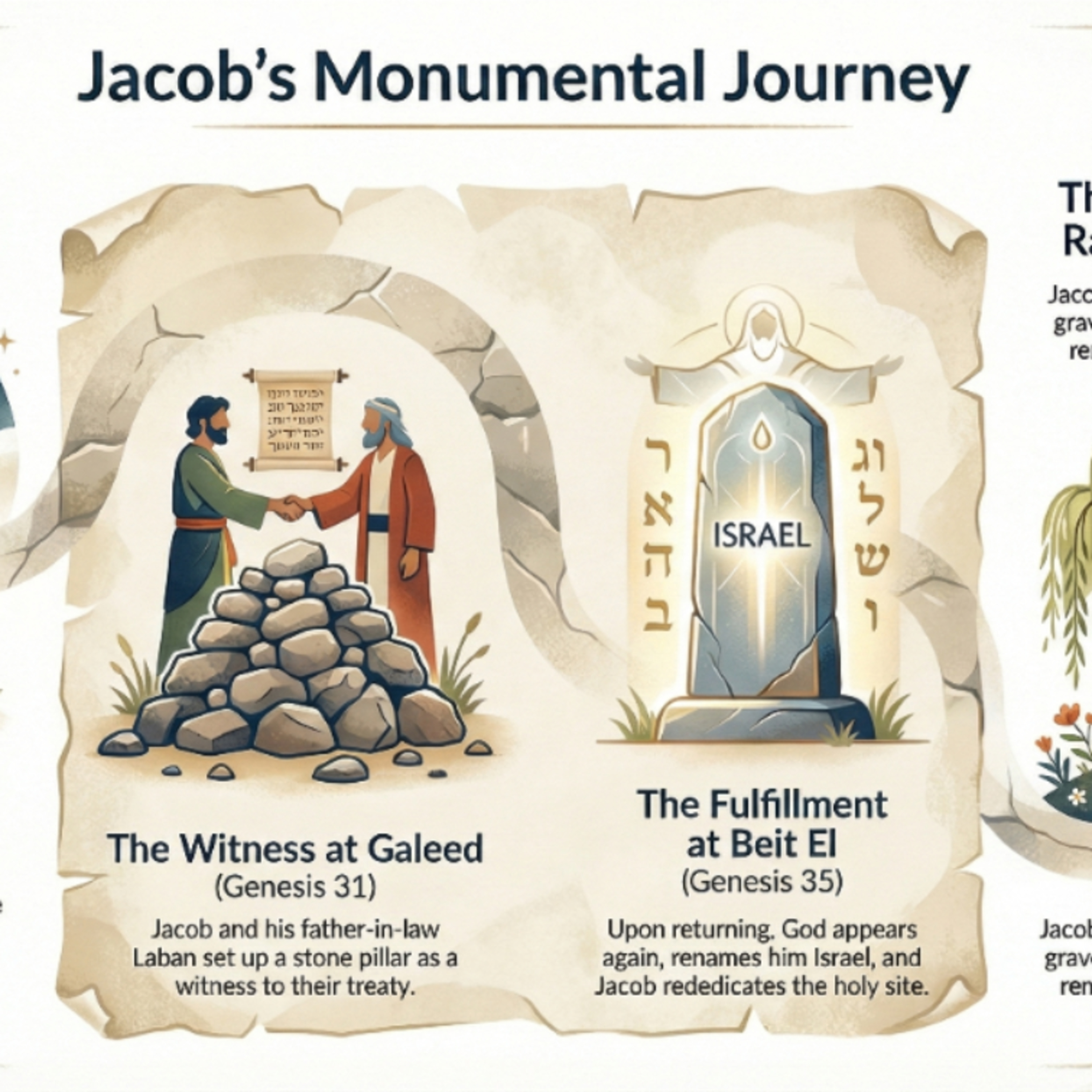 We analyze these monuments, particularly focusing on the events at Beit El and the pillar marking Rachel’s burial place. Commentators debate the theological justification for Jacob's actions, exploring whether the matzevot served as acts of worship, simple place markers, or indicators of future land inheritance.