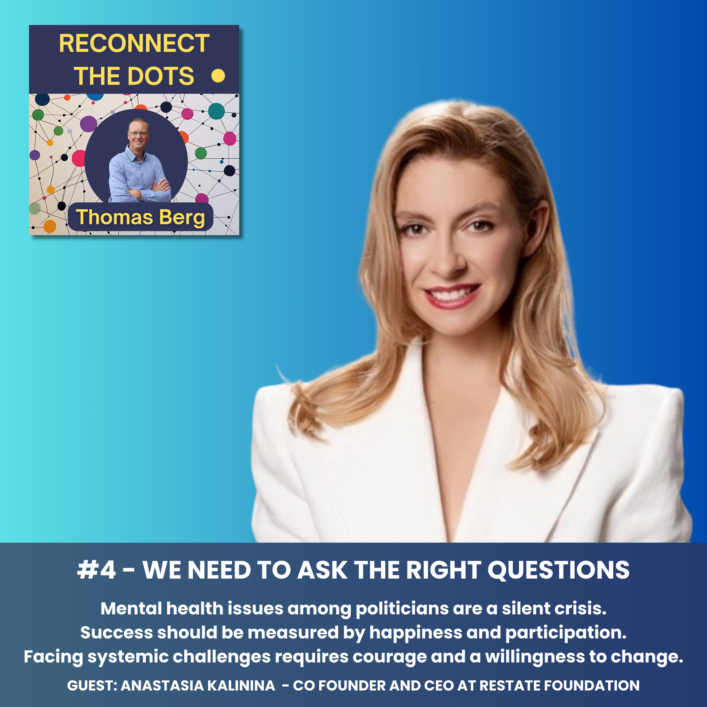 In this episode of Reconnect the Dots, Thomas Berg engages in a profound conversation with Anastasia Kalanina about the need for systemic change in governance and the importance of self-organization.