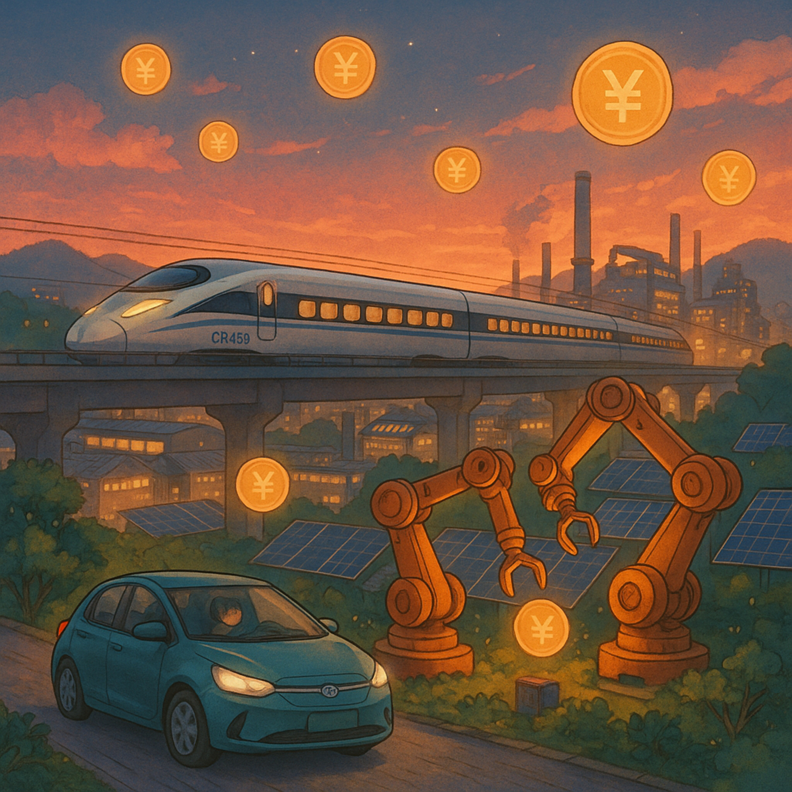 Feeds still insist China is sliding into crisis: developers default, bond yields sink below 2 percent, foreign cash flees. Yet out of sight a different engine hums at 400 km/h—the new CR450 bullet train built by factories now receiving the credit once lavished on condos. After Washington’s 2018 chip ban, Beijing funnelled loans into batteries, robots and five-nanometre fabs. BYD’s Qin L hybrid drives 2 300 km on one tank and costs less than a used Corolla; China installs more industrial robots each year than the rest of the world combined. Growth has migrated from malls to machines.