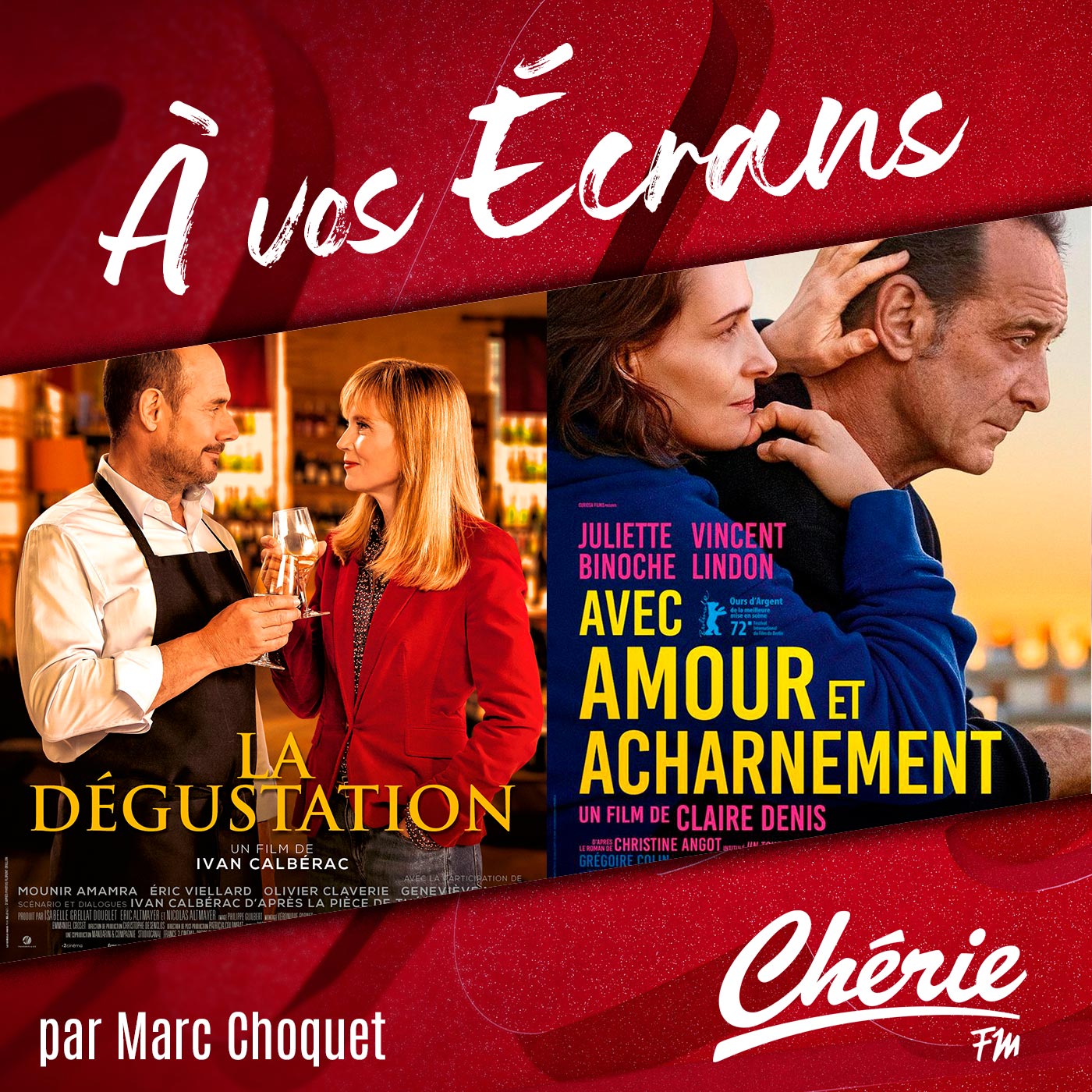 Marc Choquet vous présente l'actualité des films à voir sur vos écrans. Cette semaine, retrouvez dans toutes les salles de cinéma : « La dégustation » et « Amour et Acharnement »