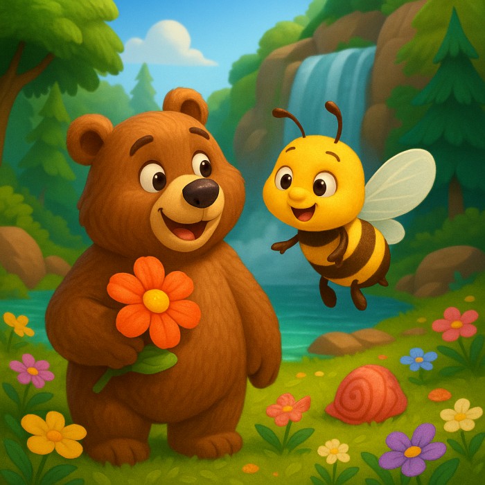 🍯 What do you get when a hungry bear, a buzzing bee, and a magical waterfall team up? A very sweet adventure! 🐻🐝🌺