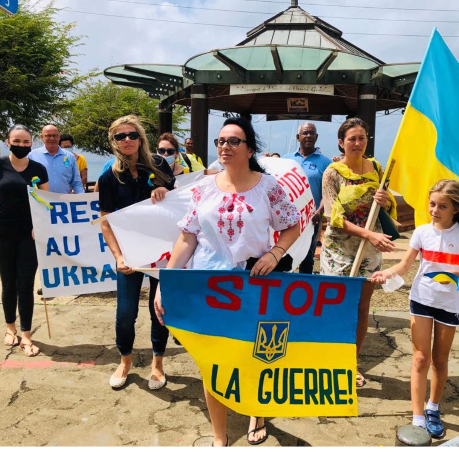 Manifestation des Ukrainiens de Martinique contre la guerre, dans les rues de Fort-de-France, samedi 12 mars 2022.