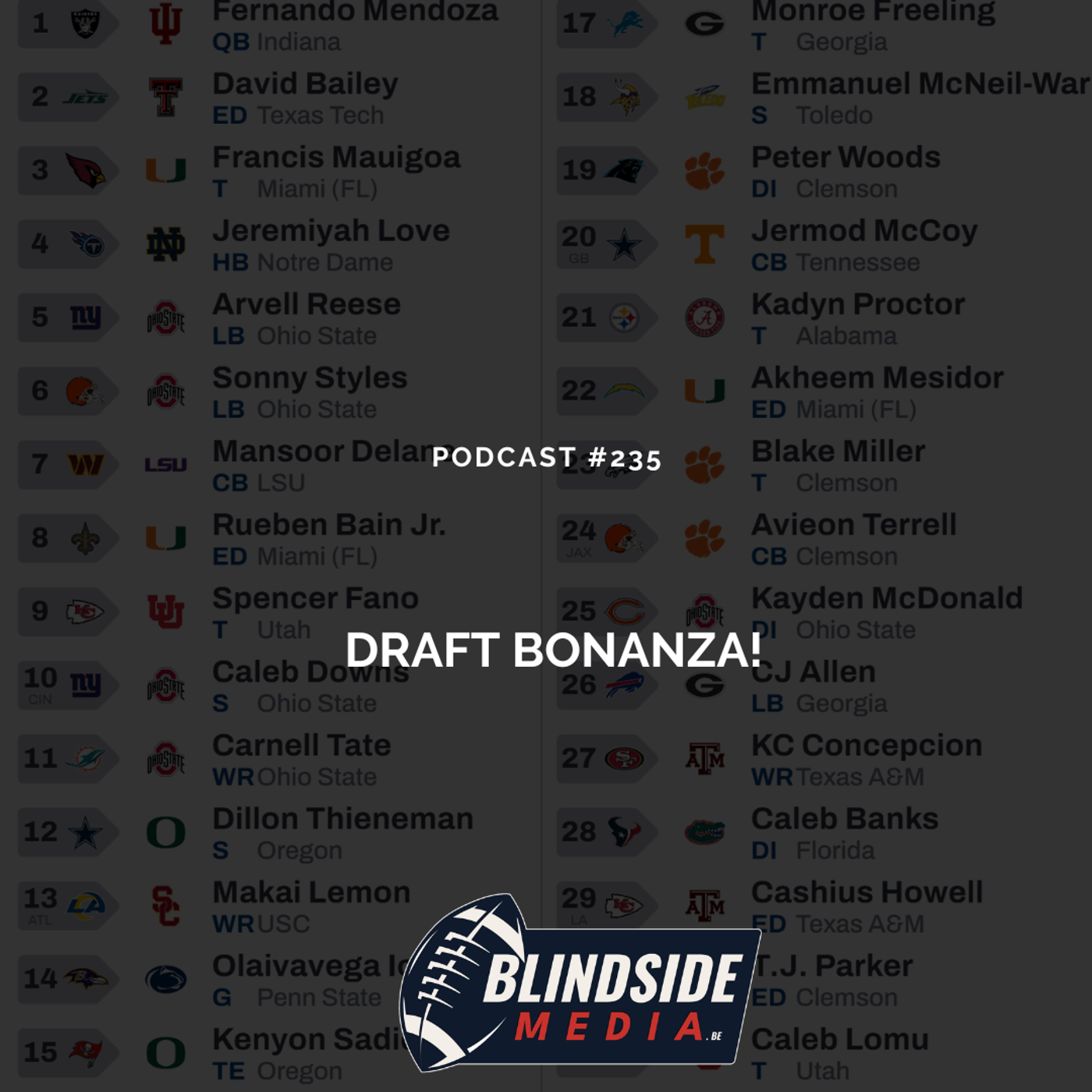 Tijdens deze Draft Bonanza duiken we diep in de NFL Draft van 2026. Geen voorspelbare analyses, maar rauwe meningen, gedurfde voorspellingen en de picks die jĂșllie willen zien. Wie zijn de absolute game-changers en welke teams maken de grootste fouten?