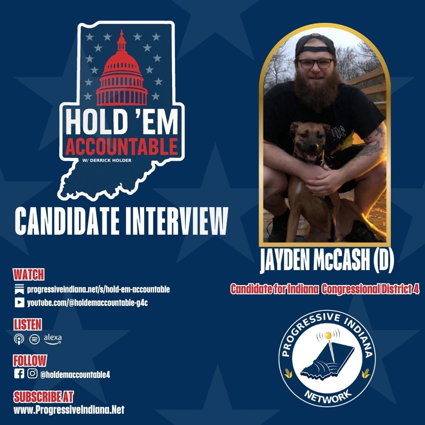 In this episode of Hold ’em Accountable, we sit down with Jayden McCash, a Democratic candidate bringing a different kind of message into a crowded primary. A lifelong Hoosier and working-class candidate, Jayden is running on a “Hoosier First” approach—focused on unity, economic fairness, and challenging politics as usual.
