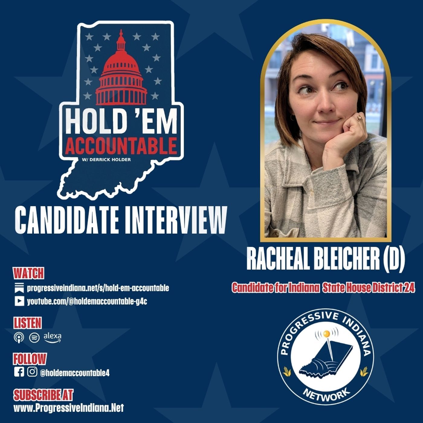 In this episode of Hold ’em Accountable, I sit down with Rachel Bleicher, Democratic candidate for Indiana House District 24, covering Westfield, Sheridan, Carmel, and Boone County.