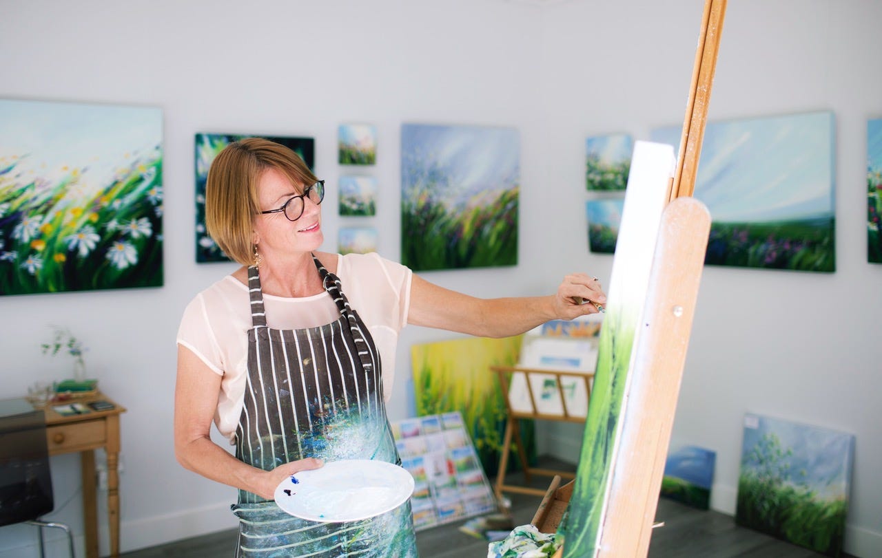 What’s missing in the story is Sue’s raison d’etre. What led her to paint? What does she experience as she goes through her process, and for someone who spend decades estranged from her passion, how did she find her way back to it.