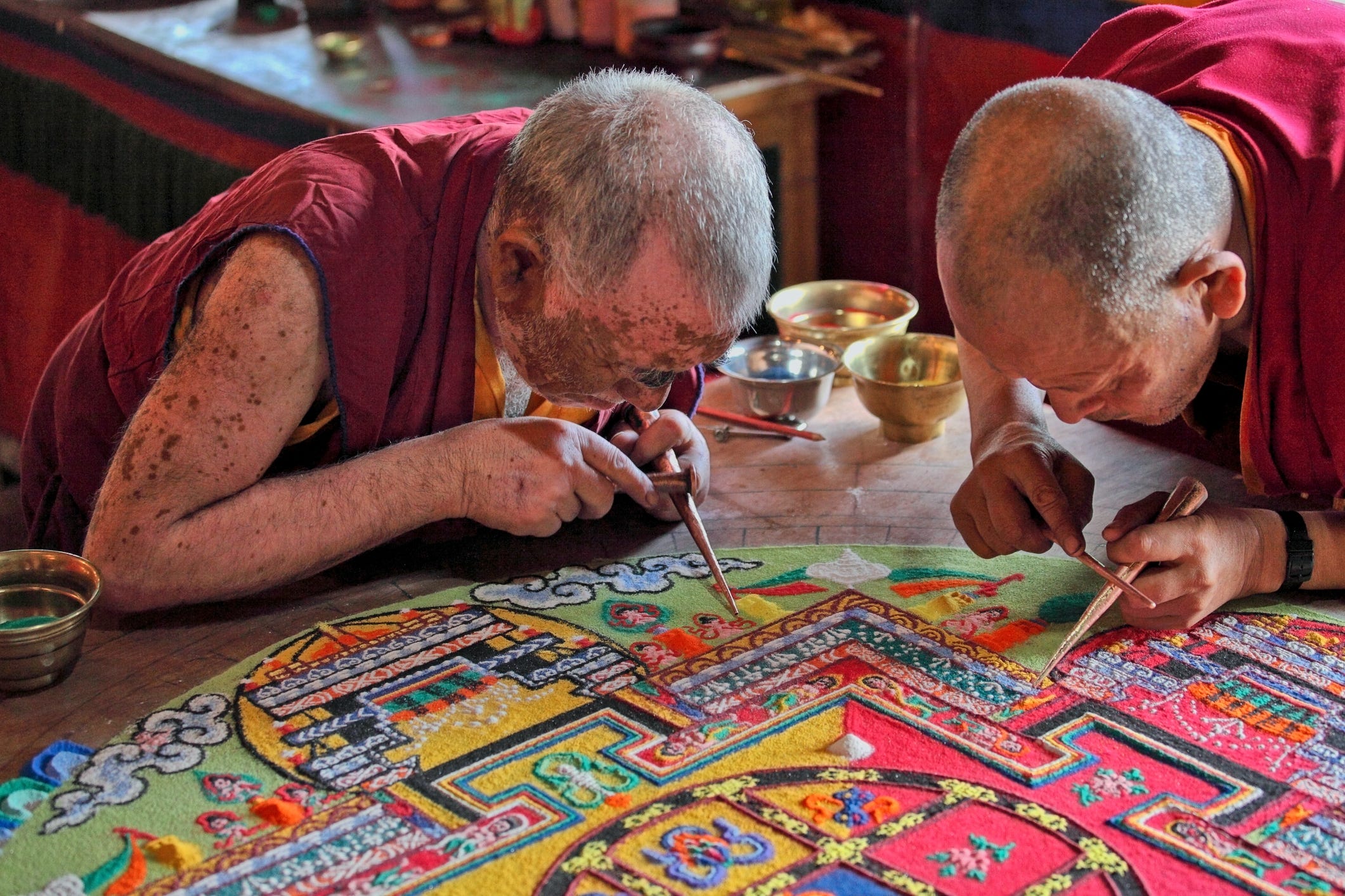 So, I published this blog post and accompanying podcast the same day as I woke up with the idea. It would have taken several the old-fashioned way. And what’s left of my ego won’t prevent me from saying the result is better than if I had done it on my own. Among other things, the idea to begin with monks creating and destroying a mandala came from Claude’s imagination, if AIs can be said to have one.