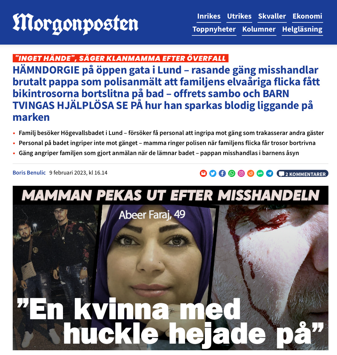 Som utgångspunkt tar jag upp ett särskilt fall som har skakat om många av oss: en familj som besökte Högevallsbadet i Lund blev trakasserade av ett gäng, och badets personal ingrep inte tillräckligt för att stoppa dem. När familjen sedan gjorde en anmälan och lämnade badet blev de angripna av samma gäng, och pappan i familjen misshandlades svårt inför sina egna barn.