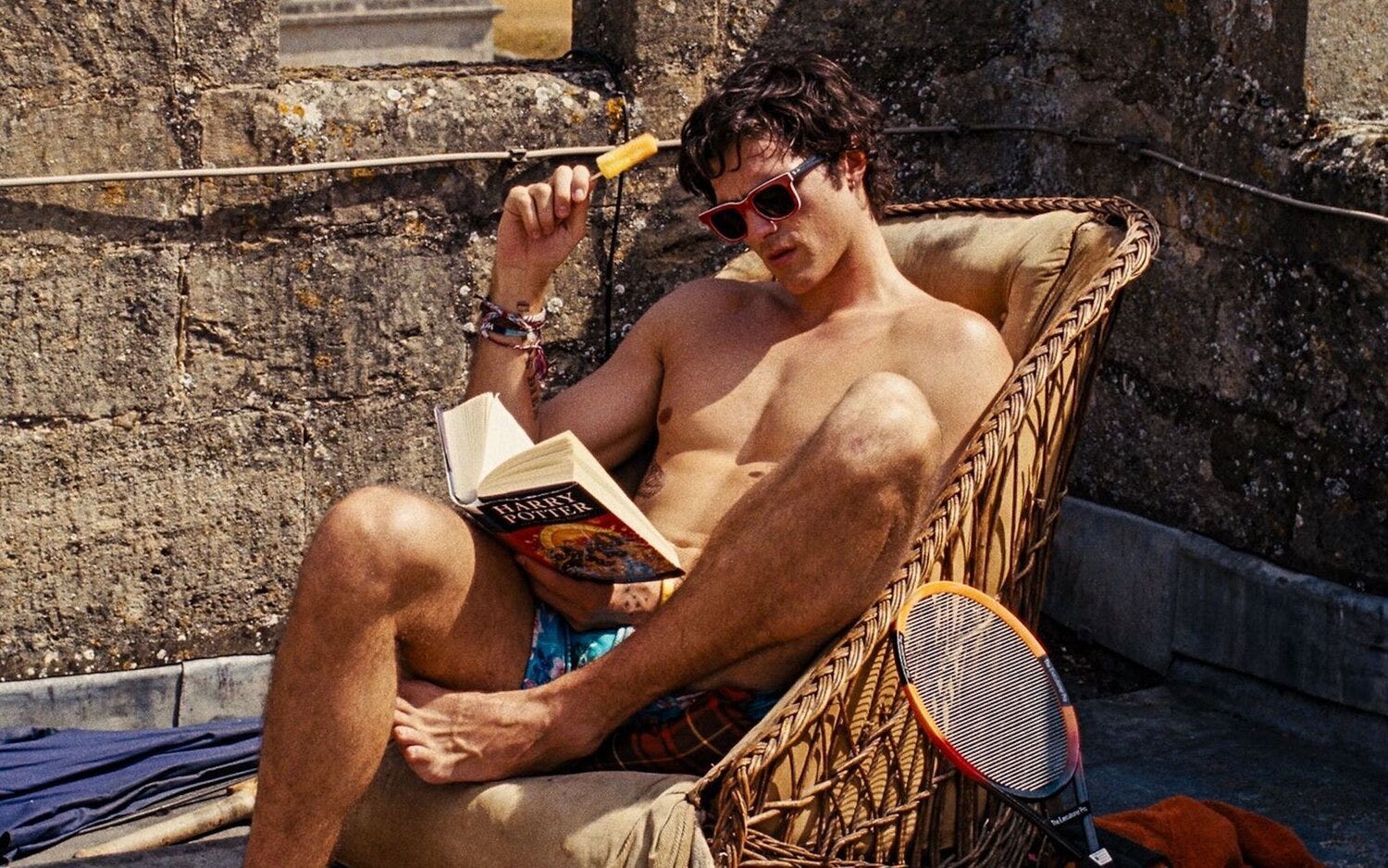 The queer looks. They learn about the rules, the eccentricities, the hypocrisies with fresh eyes, figuring out what the rich are really like, and as they do, we do, along for the ride. It’s through his queer eyes, motivated at first by lust and then curiousity, his desire muted and hence safe, that we see them living. A straight working class boy chasing a posh girl would never work; the defences would already be up. But to the English upper class queerness is disarming, even charming. In Saltburn, Quick does little else but look; nosying around the family silver, staring from the window as Venetia walks the gardens at night, watching through the crack in the door while Felix wanks in the shared bathroom between their two rooms (an architectural idiosyncracy that Saltburn shares with Brideshead and, indeed, the Perlman’s family villa in Call Me By Your Name).