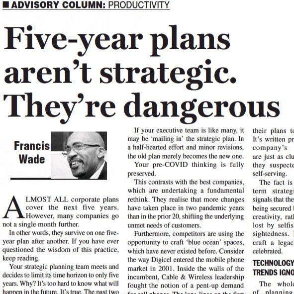 Almost all corporate plans cover the next five years. However, many companies go not a single month further. In other words, they survive on one five-year plan after another. If you have ever questioned the wisdom of this practice, keep listening.
