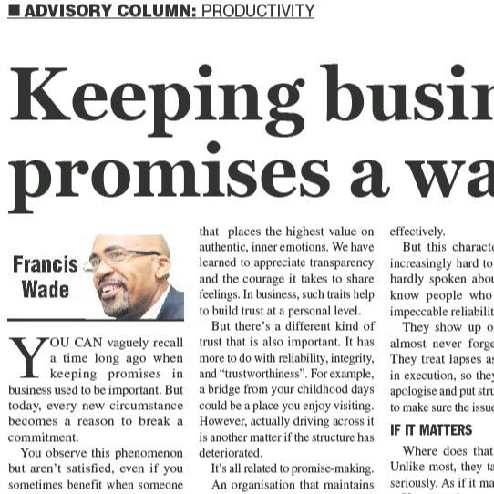 In the past, the business world held a strong emphasis on keeping promises. Unfortunately, today, it seems that commitments are easily broken at the slightest inconvenience.