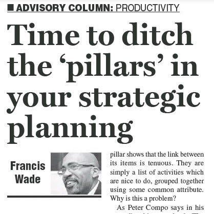 You finally have time to look back at outputs from prior strategic planning retreats. A quick glance reveals an approach they used which includes “pillars”. If so, be aware: there are some drawbacks to this technique that could lead to a weak plan.