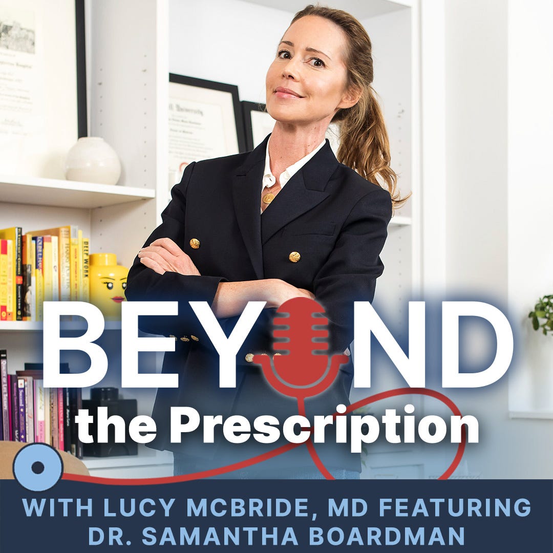 [00:00:00] Dr. McBride: Hello, and welcome to my office. I'm Dr. Lucy McBride, and this is Beyond the Prescription, the show where I talk with my guests like I do my patients, pulling the curtain back on what it means to be healthy, redefining health as more than the absence of disease. As a primary care doctor for over 20 years, I've realized that patients are much more than their cholesterol and their weight, that we are the integrated sum of complex parts.