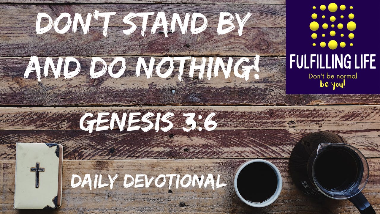 When Eve ate the apple from the tree, Adam stood by and did nothing, he even joined in with her rebellion against God’s command not to eat from it. As Christians, we have to learn to stop people sinning and especially not to join in with them!
