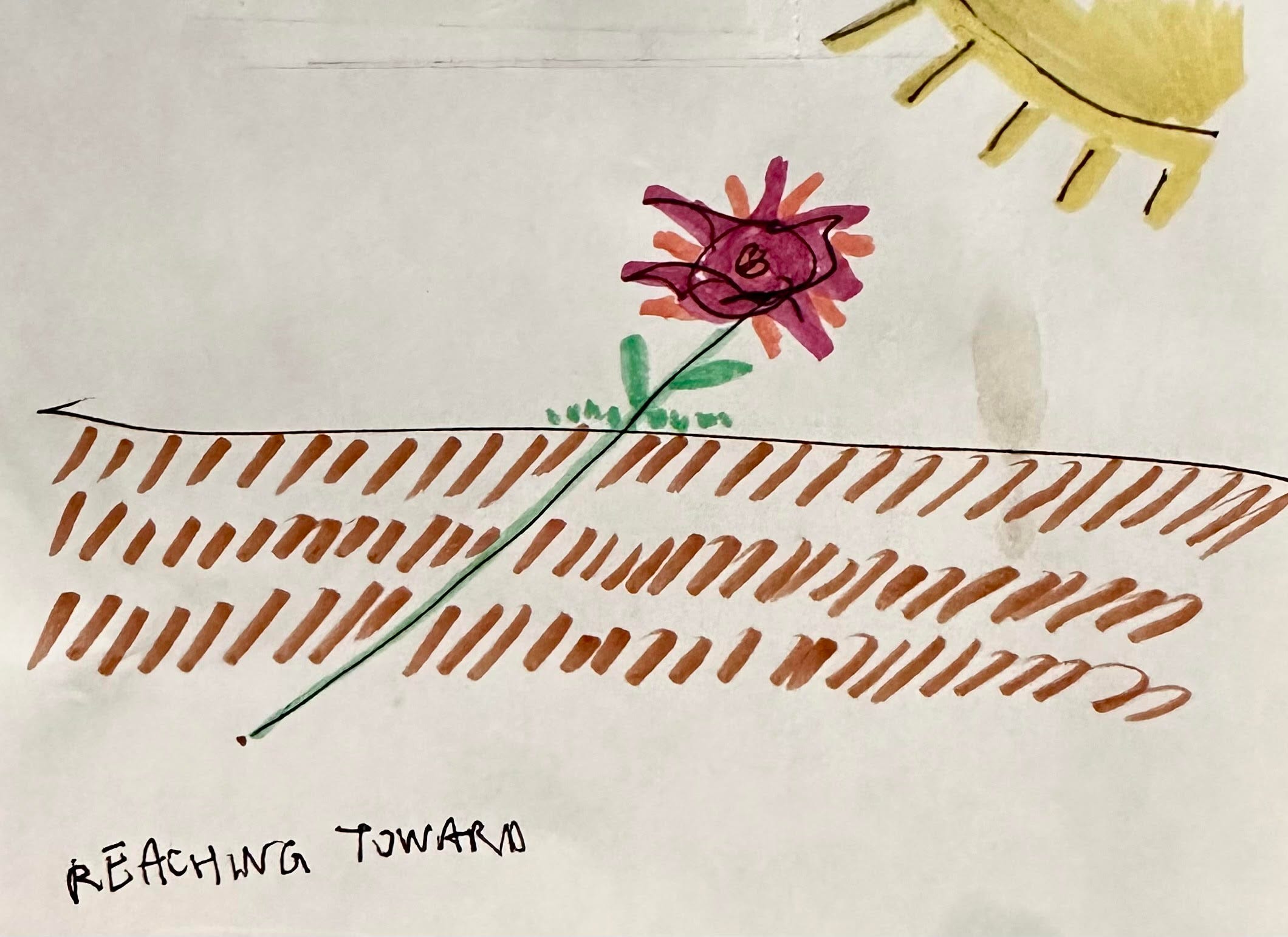 And I drew out a little picture with some markers showing this green stem going through this brown dirt and breaking ground, blossoming flowers and leaves reaching toward the sun.