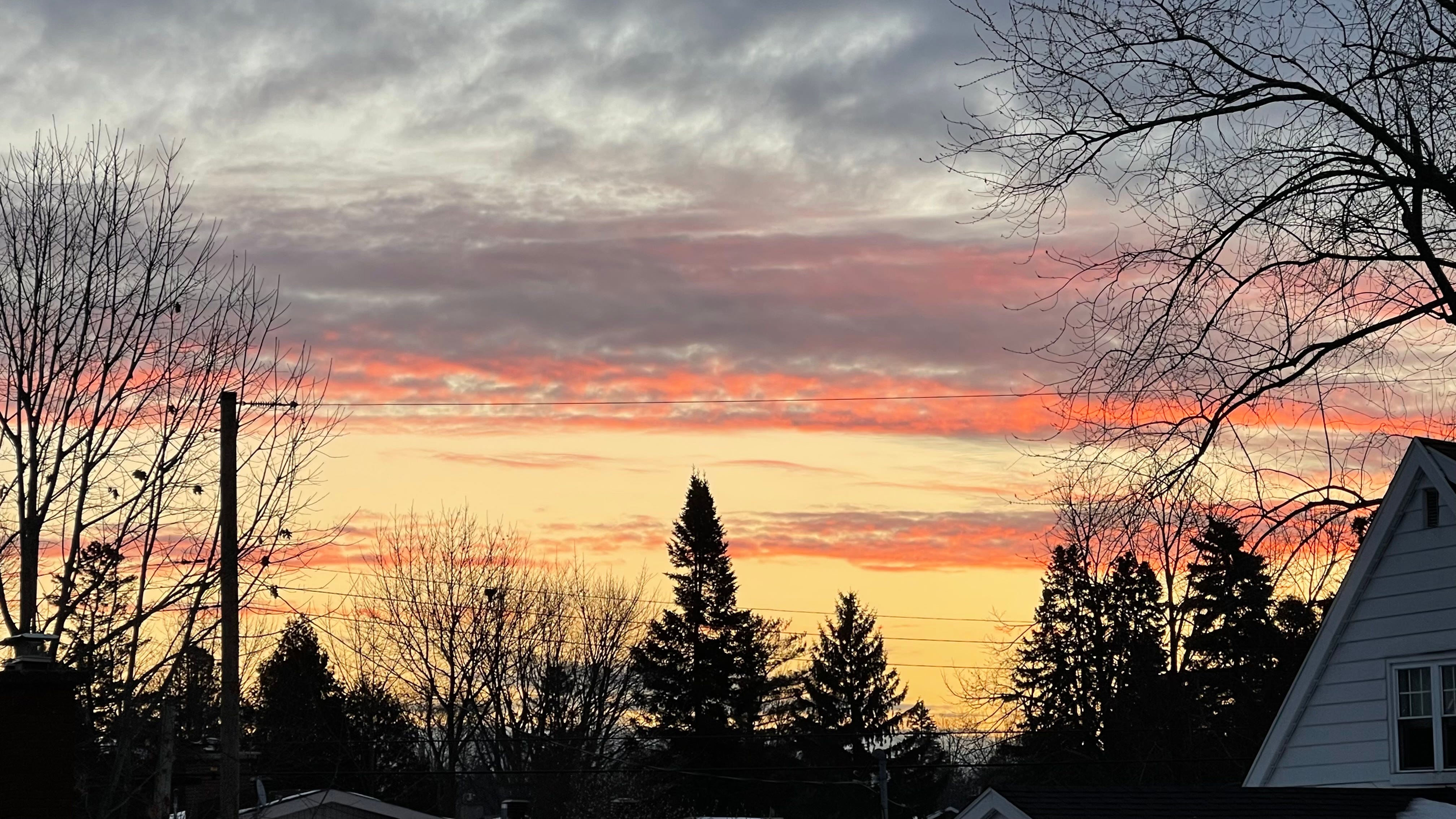 pre-raphaelite / pigments in the sky / shot out from the horizon // above a house and its trees / bruised blue electric / vermillion gold sun